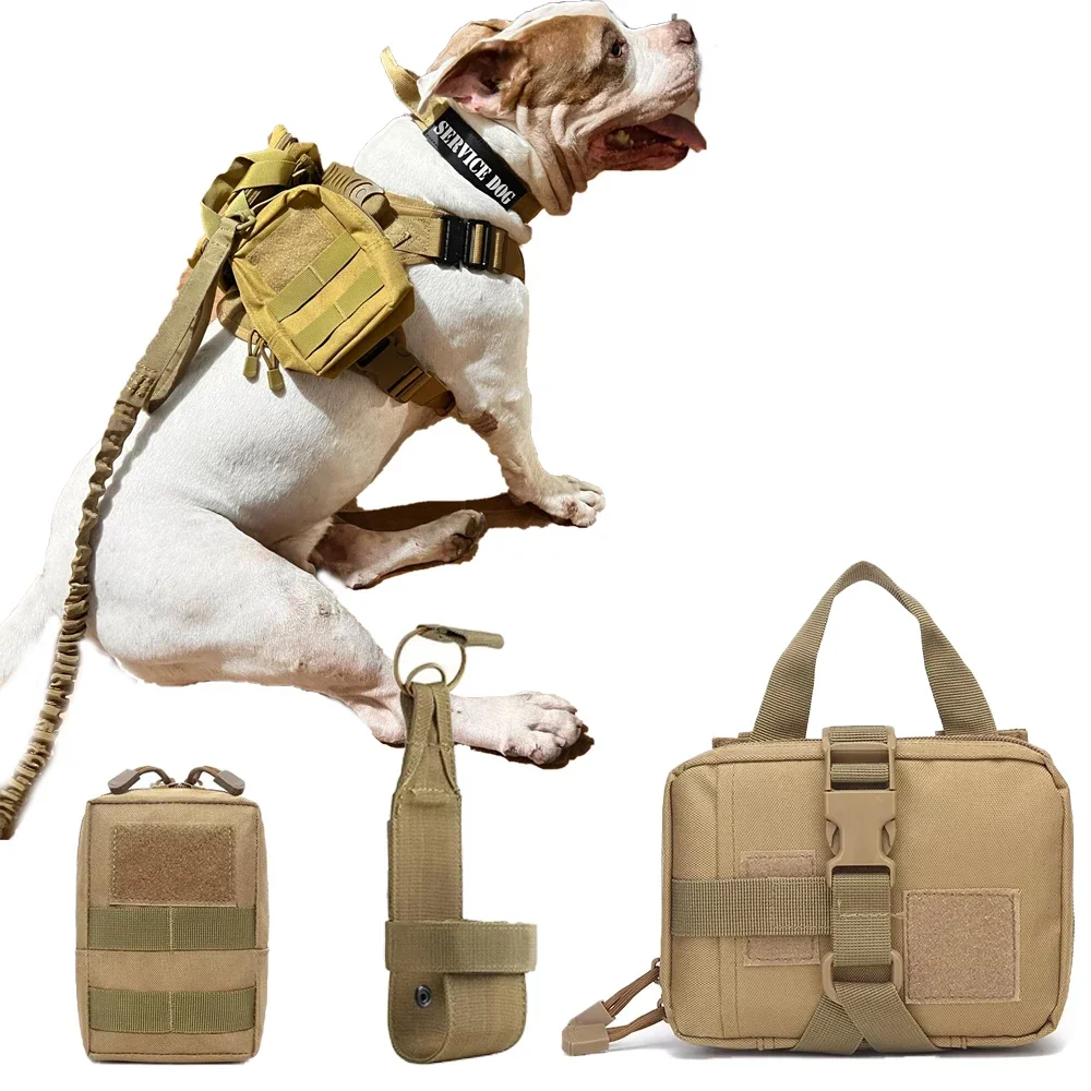 El juego de bolsa táctica para perros de 3 uds se puede fijar en las correas, el chaleco de bolsa de entrenamiento multifuncional puede colgar botellas de agua