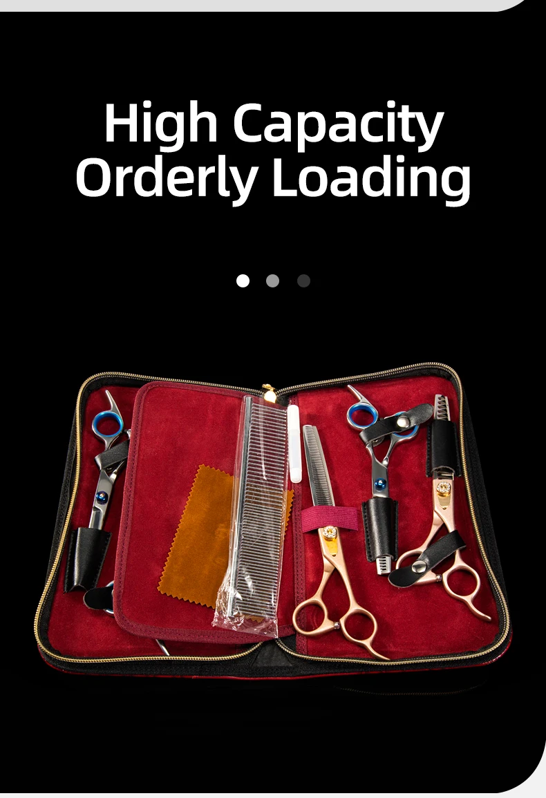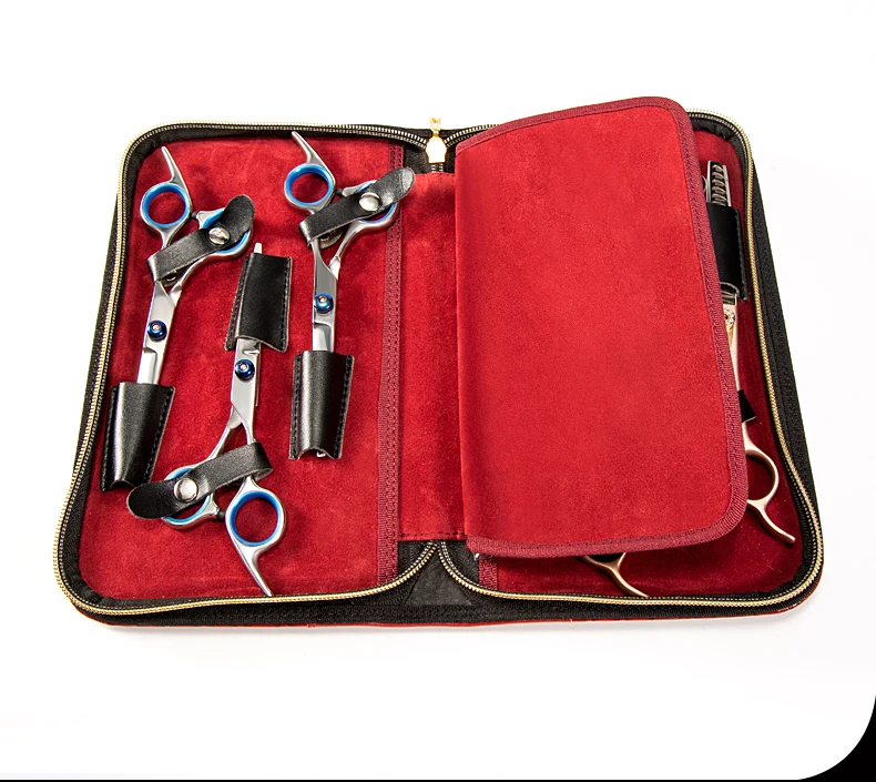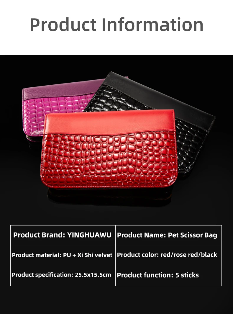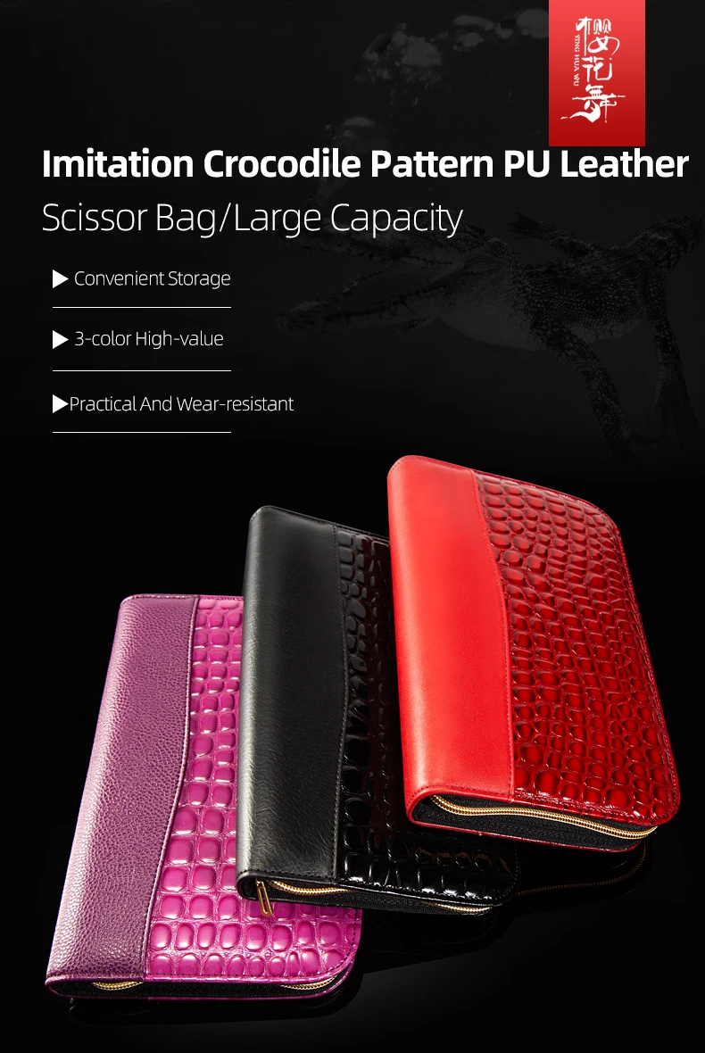 Juego de bolsa de tijeras negra para esteticista de mascotas profesional, solución de almacenamiento de 5 piezas de imitación de cuero de cocodrilo de gran capacidad