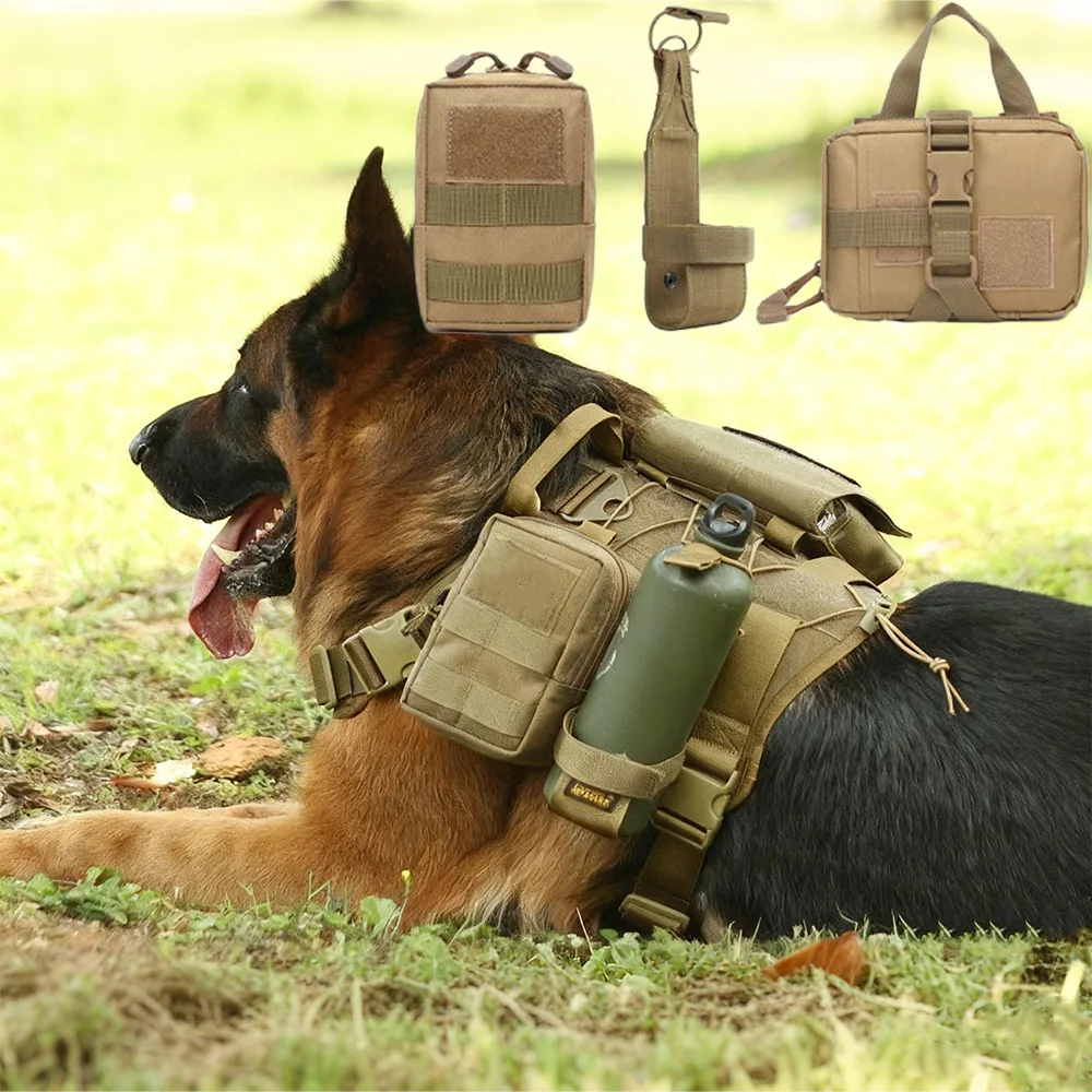 Conjunto de bolsas tácticas para arnés de perro, bolsas de nailon de estilo militar, multiusos para entrenamiento de perros, aventuras al aire libre y almacenamiento de equipo