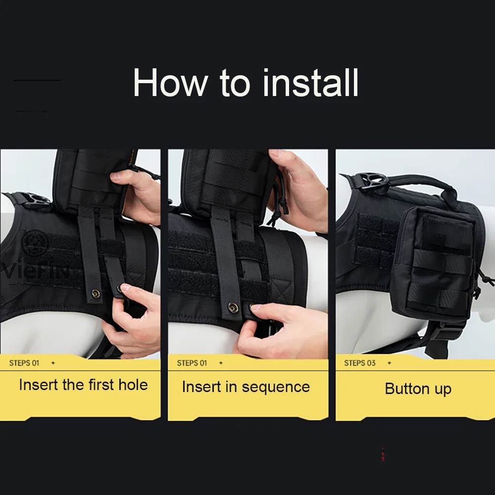 Este producto es una bolsa del sistema MOLLE versátil y táctica diseñada para usarse con arneses para perros, lo que la hace ideal para actividades al aire libre como la caza o el transporte diario (EDC).Fabricado con nailon 1000D duradero, está construido para soportar condiciones difíciles y es resistente al desgaste.