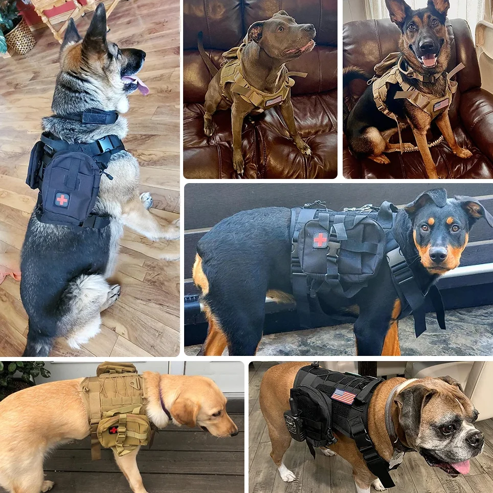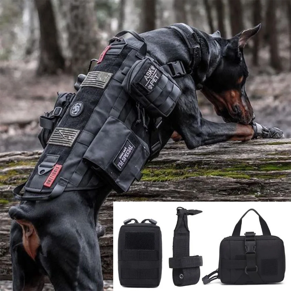 Conjunto de bolsas tácticas para arnés de perro, bolsas de nailon multiusos de estilo militar, compatibles con chalecos para perros para entrenamiento y aventuras de perros