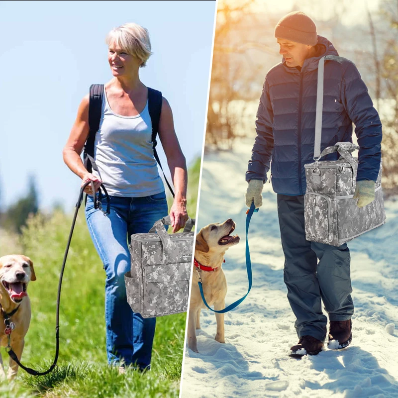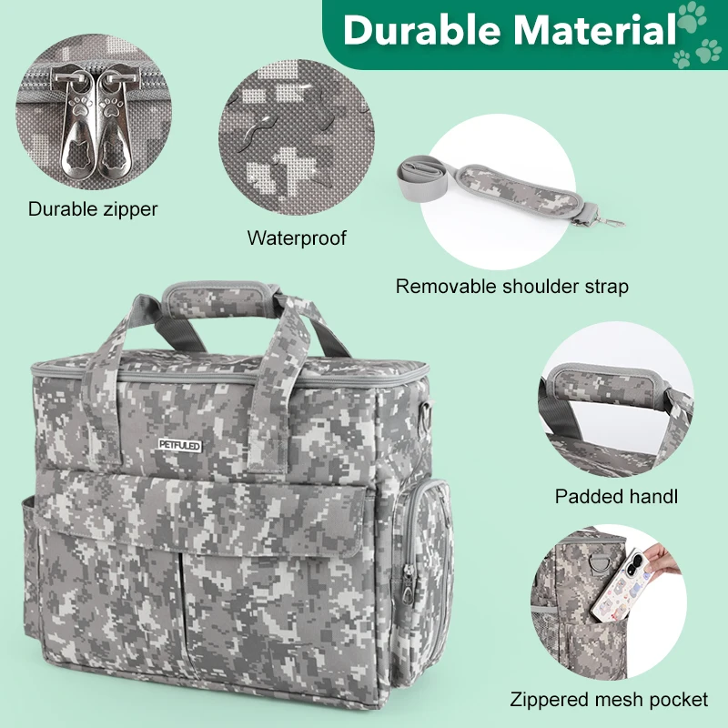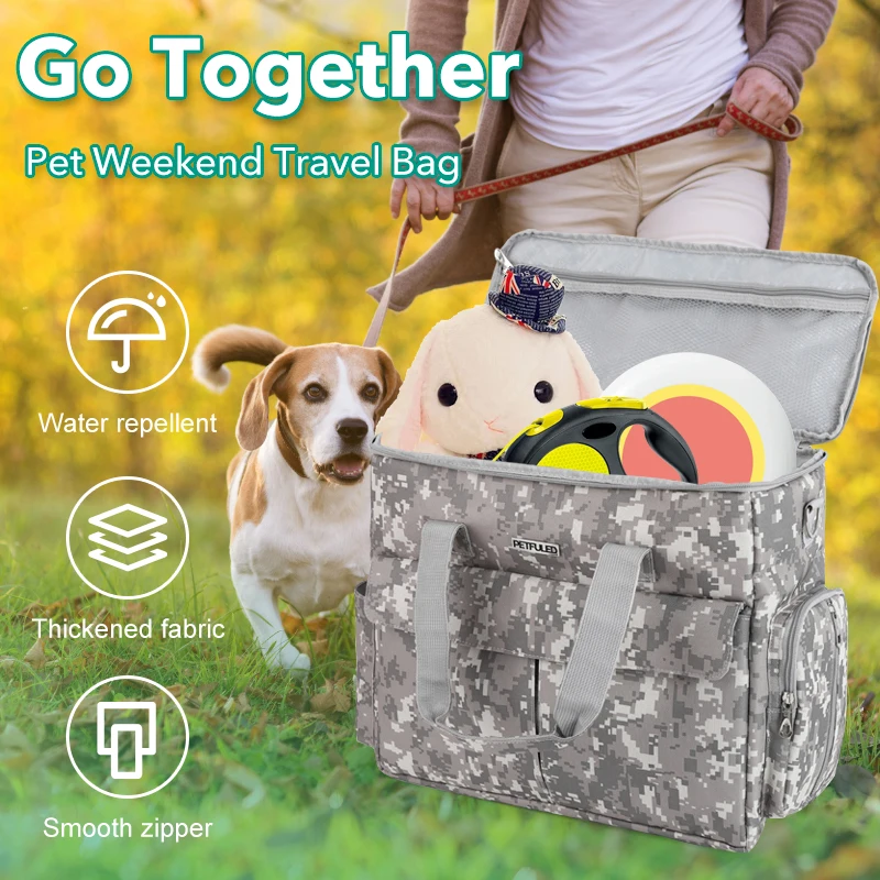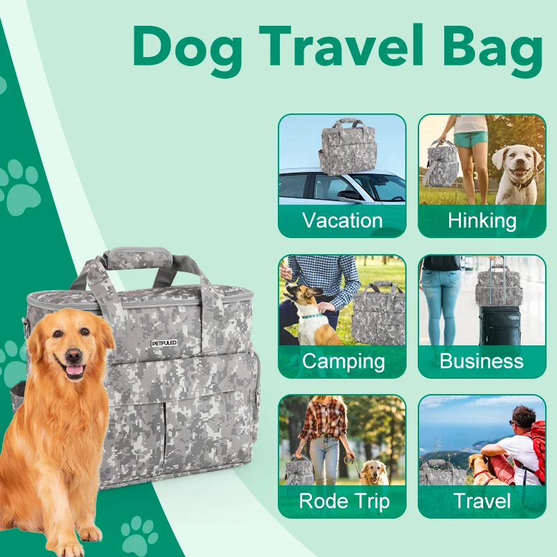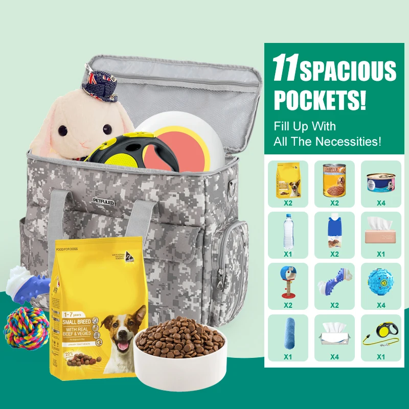 Múltiples bolsillos funcionales: con varios bolsillos multifuncionales, esta bolsa ofrece mucho espacio de almacenamiento para los juguetes, golosinas y otras necesidades de su mascota, manteniendo todo perfectamente organizado para un fácil acceso.
