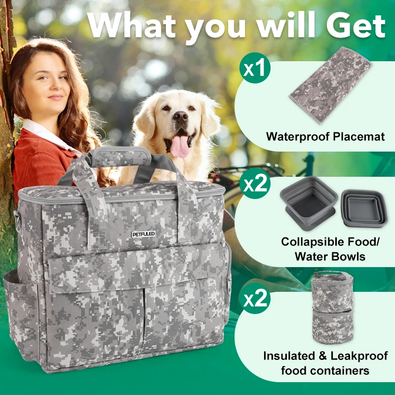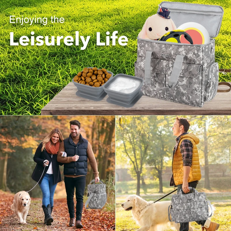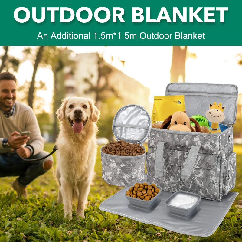 Kit completo de viaje para mascotas: la bolsa viene con dos contenedores de almacenamiento de alimentos, dos tazones plegables para perros y una alfombra de comedor, lo que brinda todos los elementos esenciales que necesita para una experiencia de viaje conveniente y organizada para mascotas.