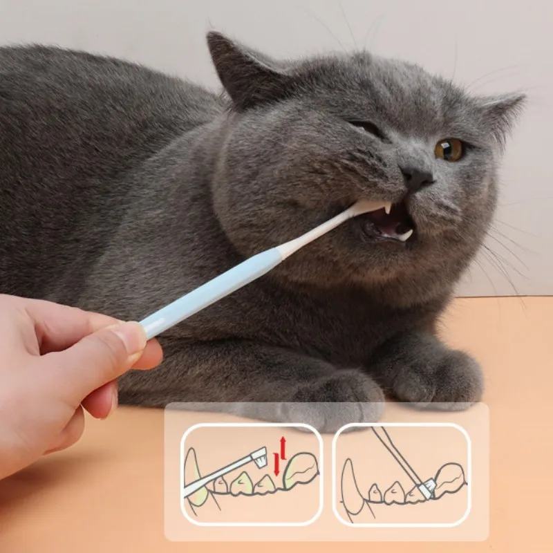 Juego de cepillos de dientes para mascotas, cepillo de dientes de cabeza pequeña para gatos, 2 piezas, cuidado bucal, 360 grados, traje de cepillo de dientes para gatos, pelo suave, Limpieza de dientes para perros, 2 piezas