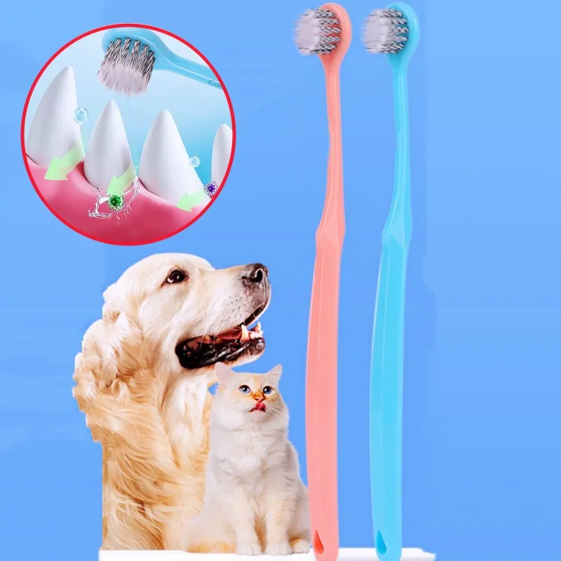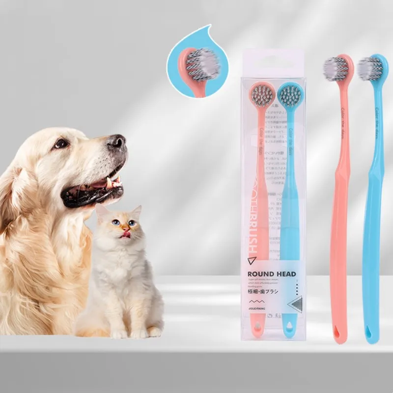 Juego de cepillos de dientes para perros, cepillo de dientes para mascotas de cabeza pequeña, 2 uds., limpieza de dientes para perros, cepillos de dientes de cabeza redonda para gatos, juego de 2 uds., productos para el cuidado bucal para mascotas