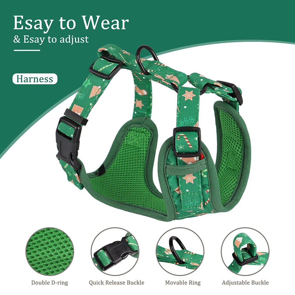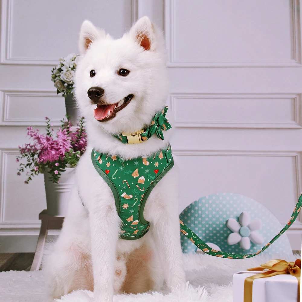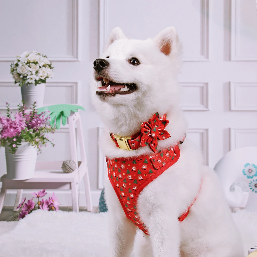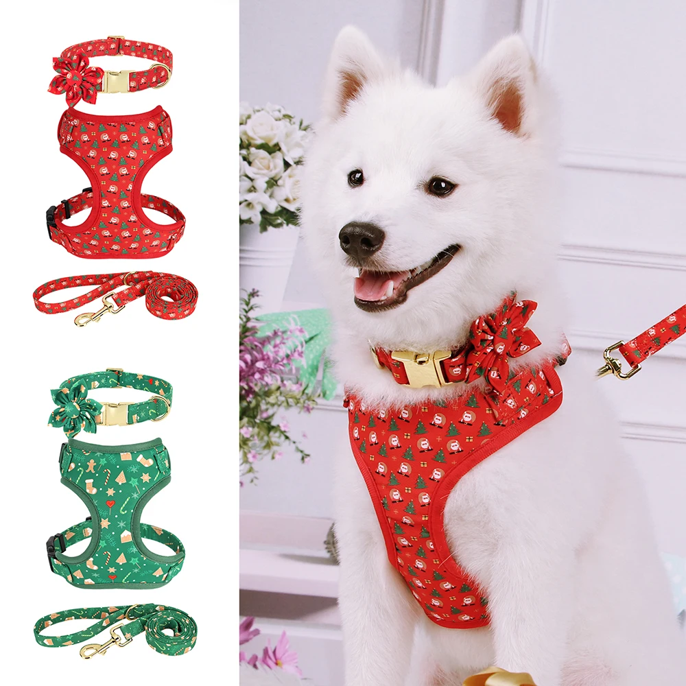 3pcs/set Dog Harness Collar Leash Set Christmas Gift Set for Dogs Cute Flower Accessory Dogs Christmas Collar for Chihuahua Pug