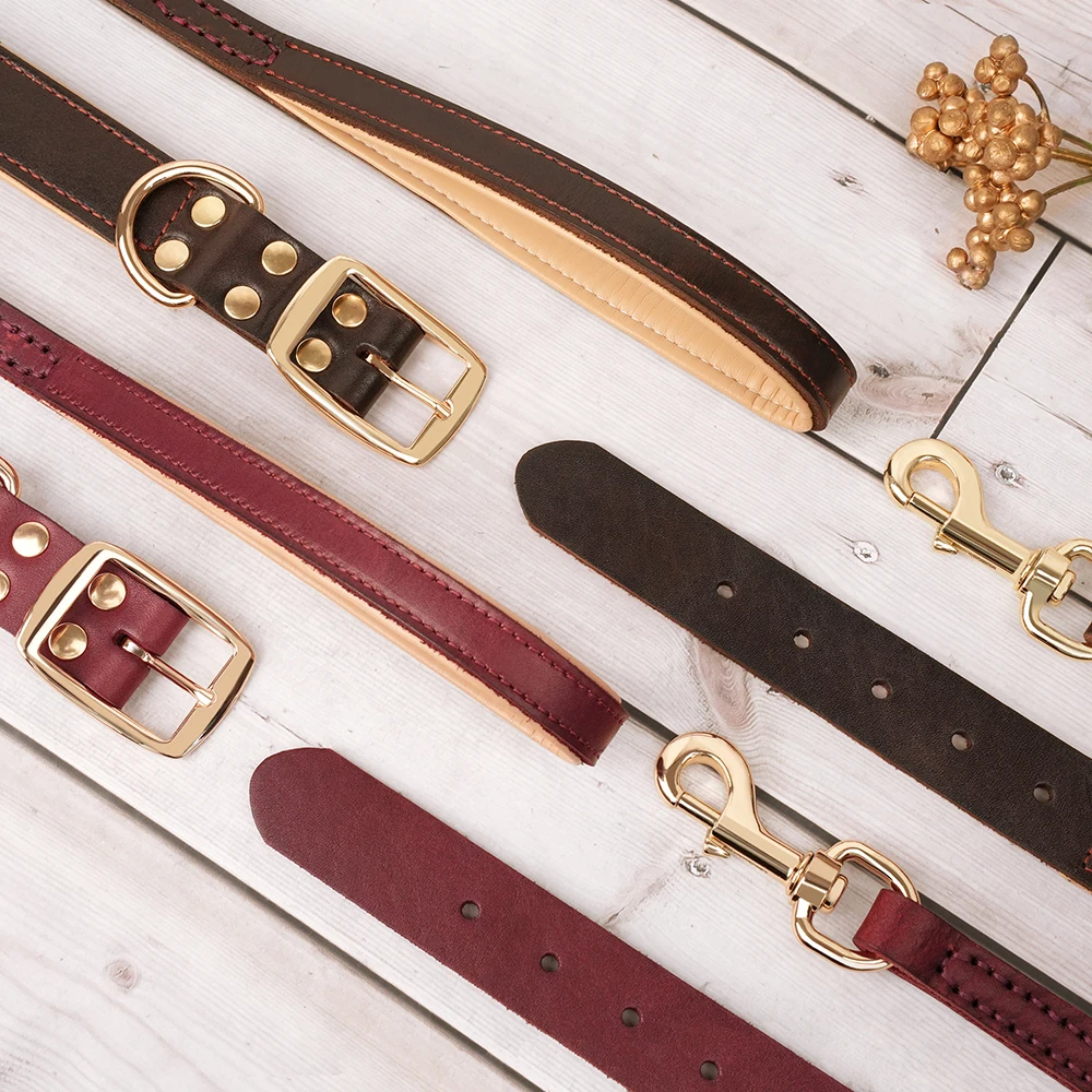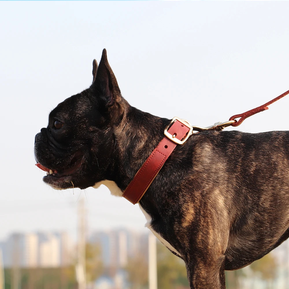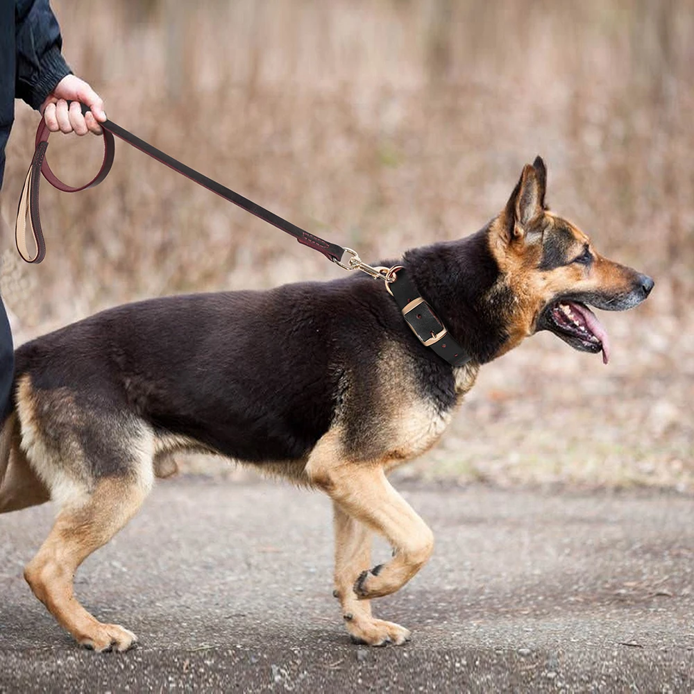 Juego de collar y correa de cuero Real para perros, collares de cuero ajustables, cinturón de plomo para perros pequeños, medianos y grandes, duradero