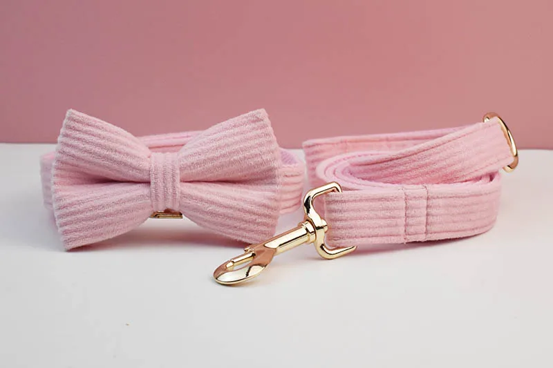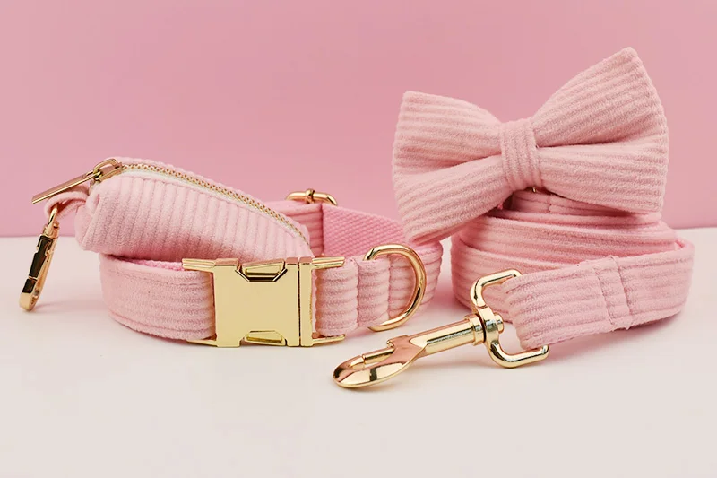 Juego de collar y correa de perro de pana rosa para perros placa de identificación grabada personalizada suministros para mascotas correa de perro Corduroy07