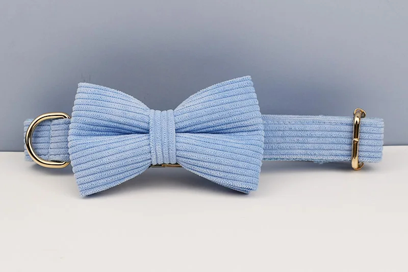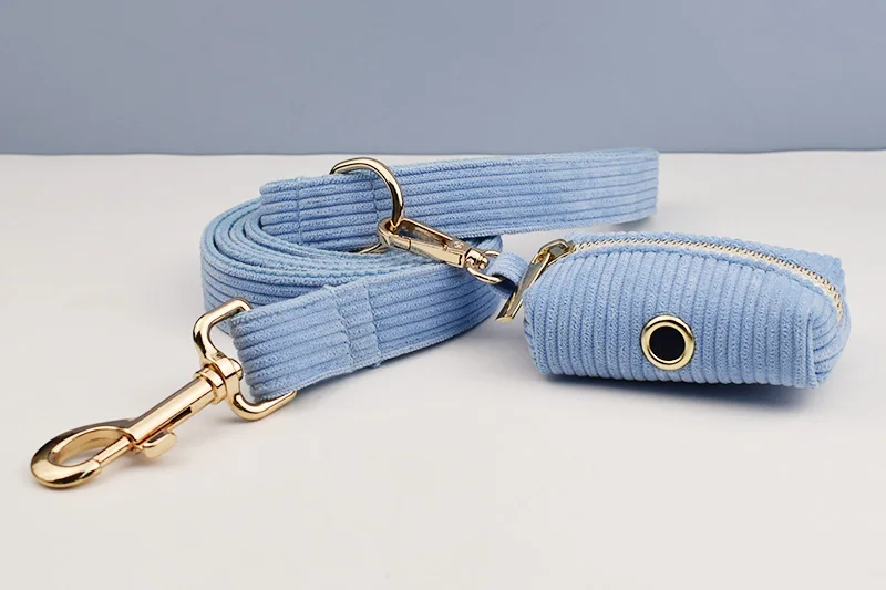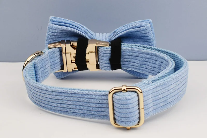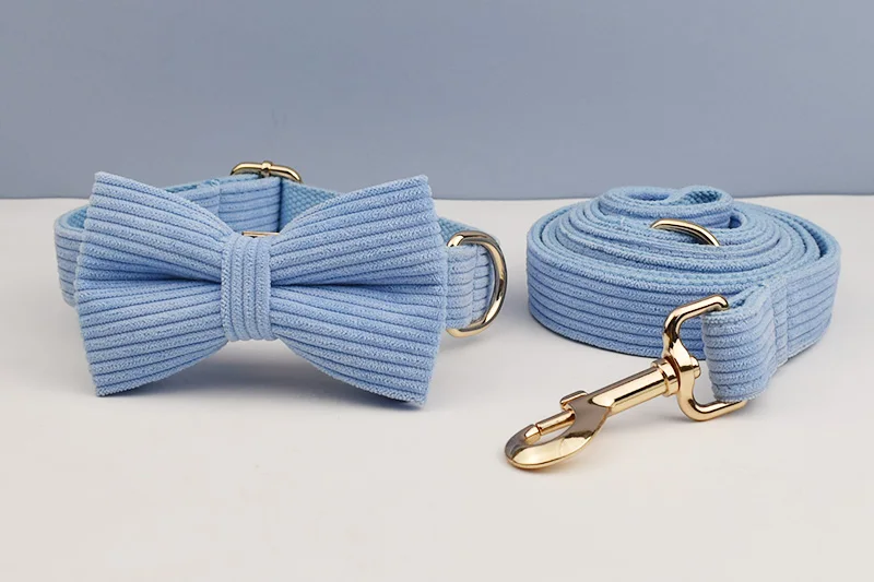 Juego de collar y correa de pana azul para perros, placa con nombre grabada personalizada, suministros para mascotas, correa para perro, pana08