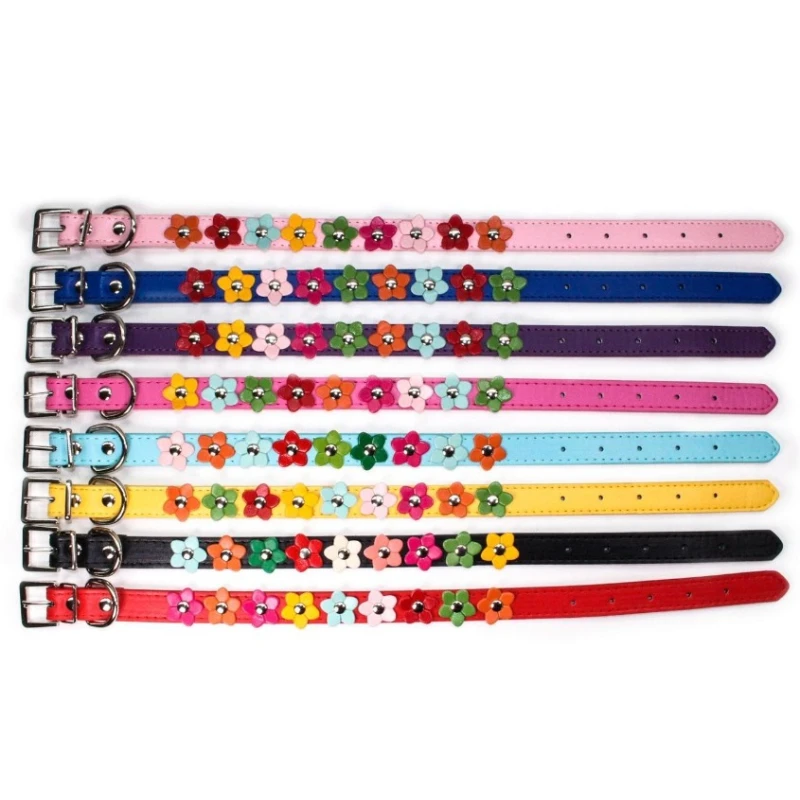 Juego de collar y correa de cuero PU floral para perros: ajustable, decorativo y duradero para perros de XS a S
