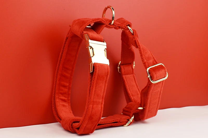 Juego de collar y correa de terciopelo rojo para perros pequeños, medianos y grandes, placa con nombre grabada personalizada, suministros para mascotas, correa para perros de franela03