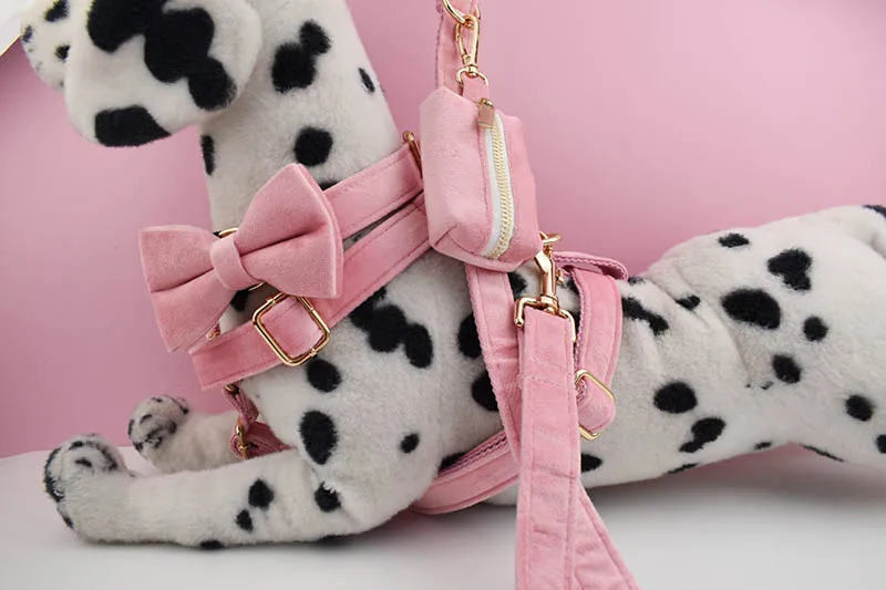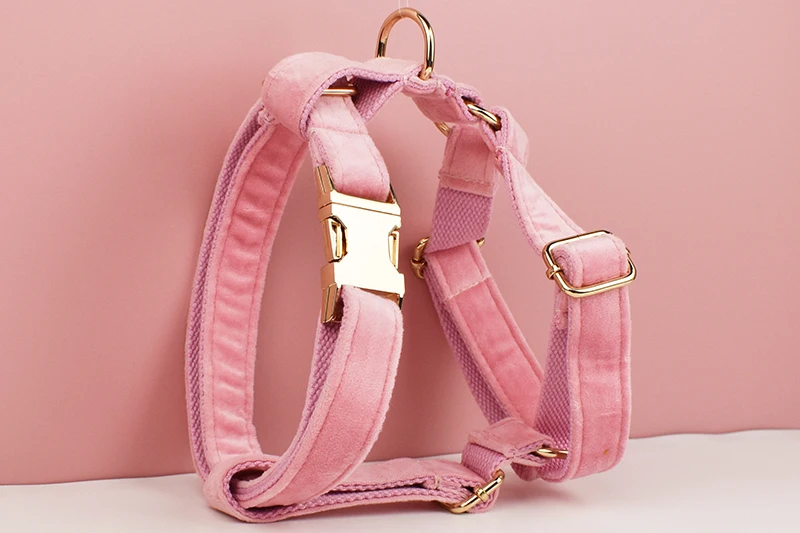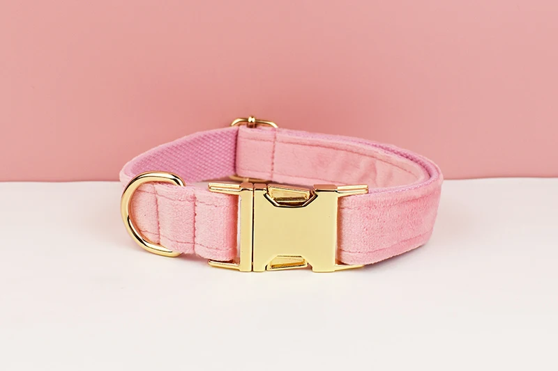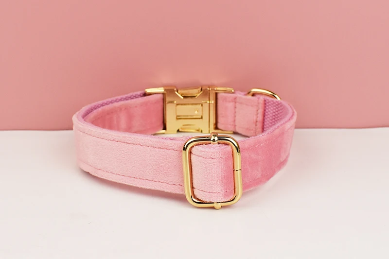 Collar y correa de terciopelo rosa para perros pequeños, medianos y grandes, placa de identificación grabada personalizada, suministros para mascotas, correa para perros Velvet 01