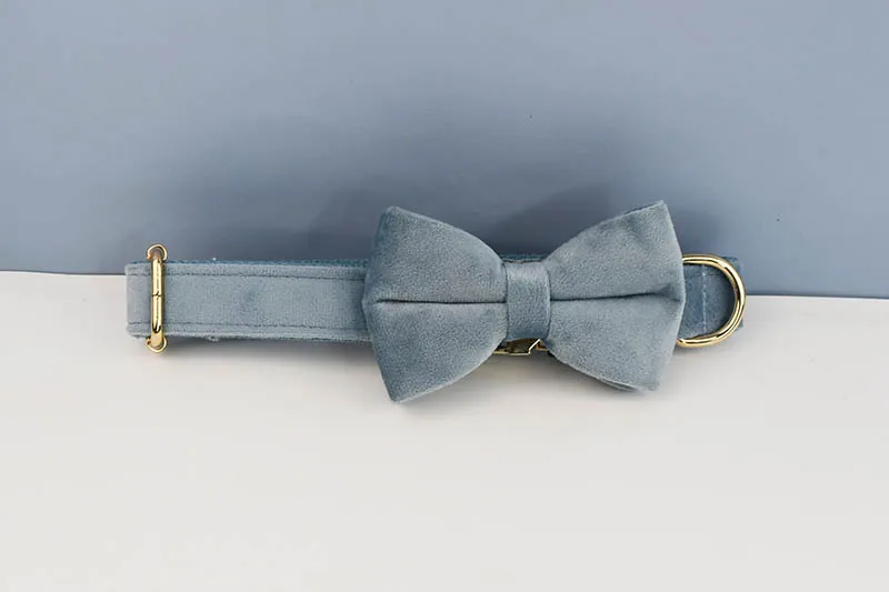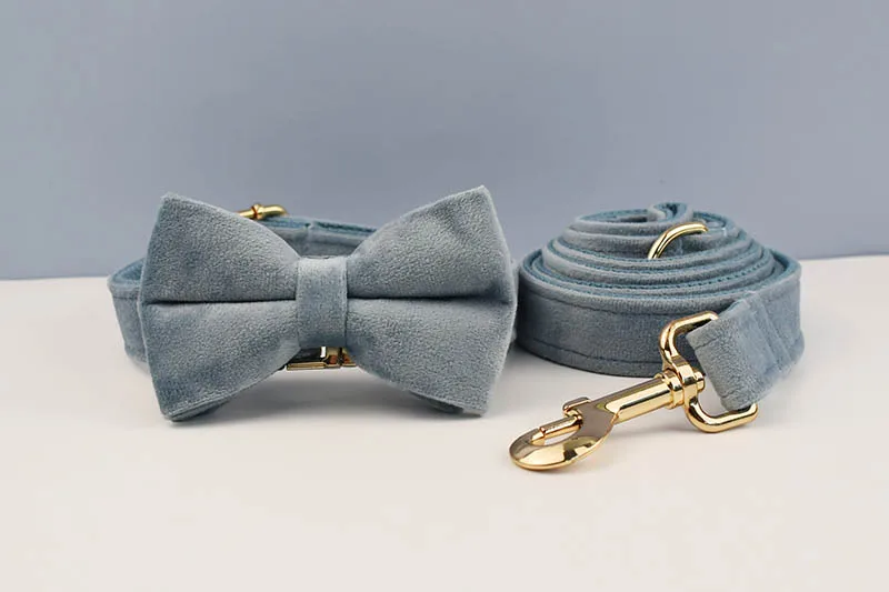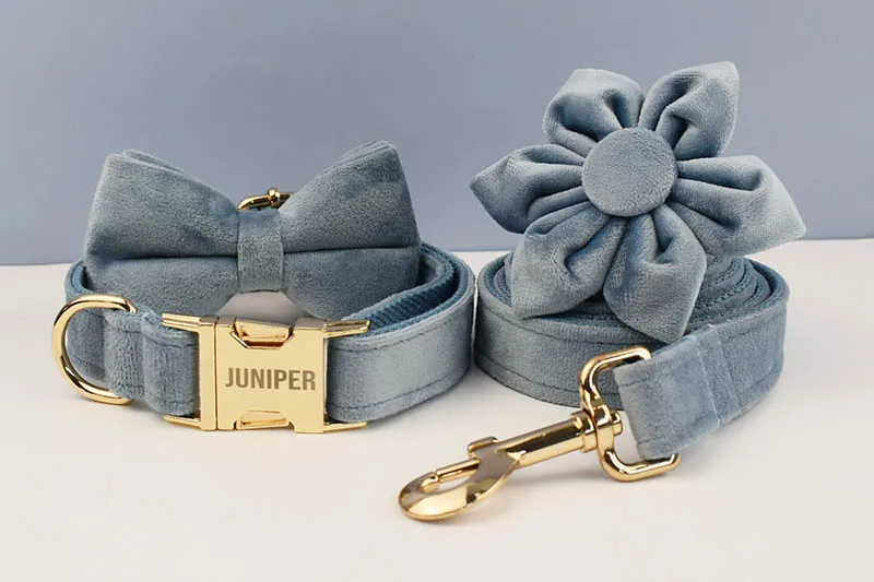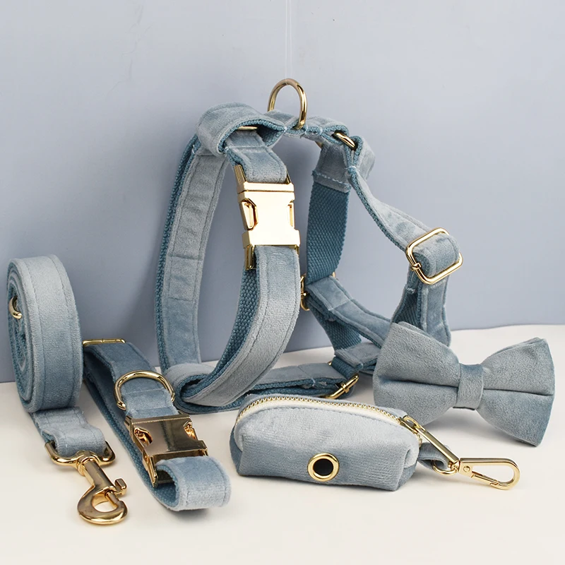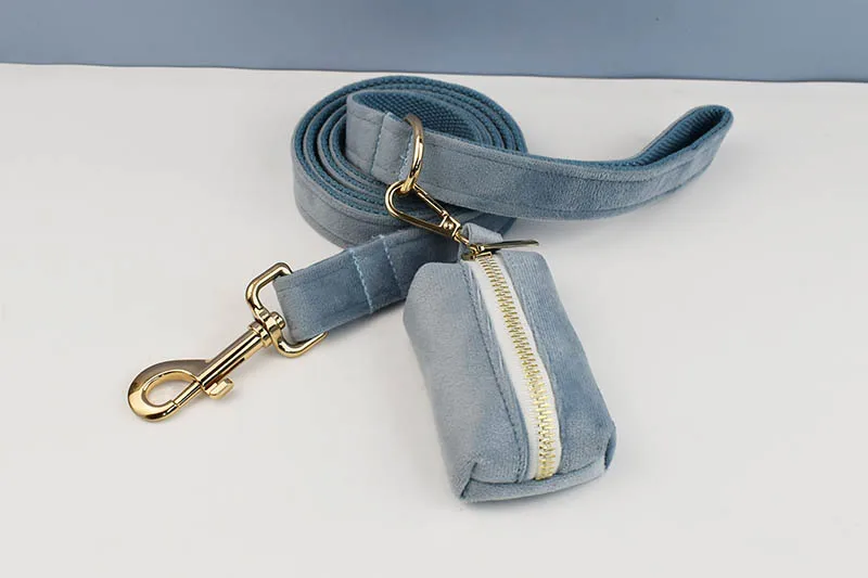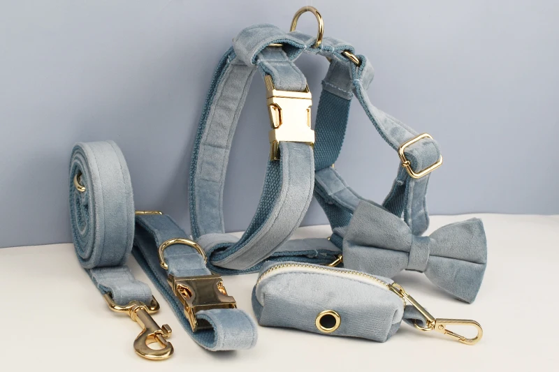 Conjunto de collar y correa de perro de terciopelo azul nórdico para perros placa de identificación grabada personalizada suministros para mascotas correa de perro Velvet18