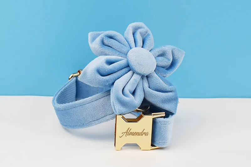 Conjunto de collar y correa de perro de terciopelo azul para perros pequeños, medianos y grandes, placa de identificación grabada personalizada, suministros para mascotas, correa para perro Velvet15