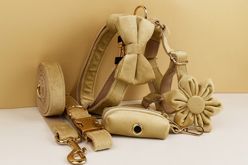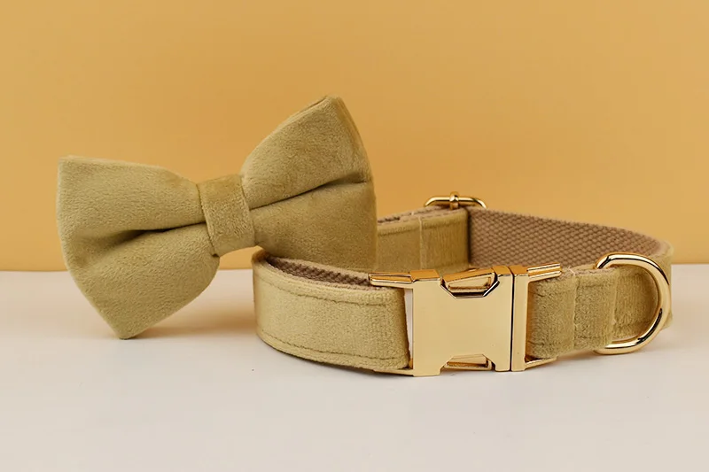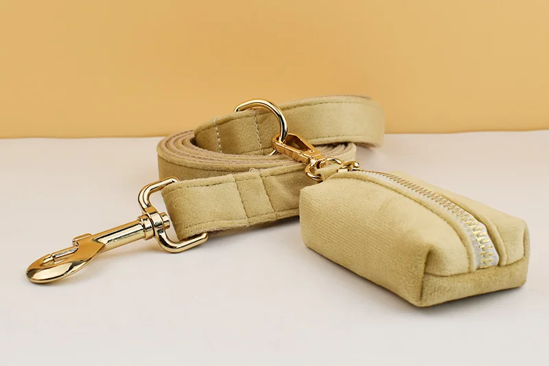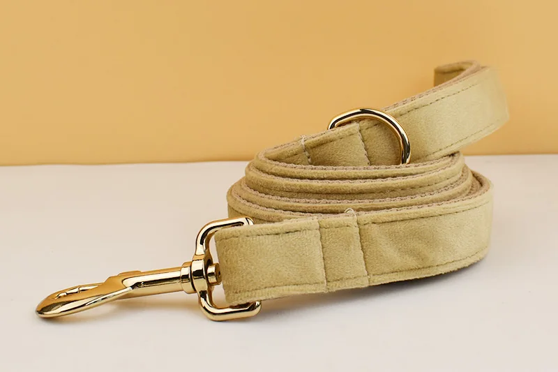 Conjunto de collar y correa de perro de terciopelo desnudo para perros pequeños, medianos y grandes, placa de identificación grabada personalizada, suministros para mascotas, correa para perro Velvet09