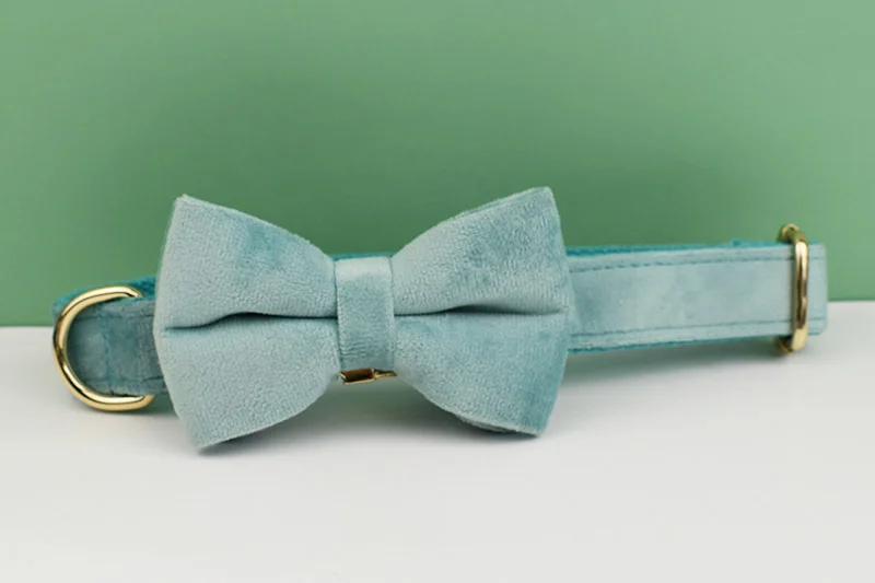 Conjunto de collar y correa de perro de terciopelo verde para perros pequeños, medianos y grandes, placa de identificación grabada personalizada, suministros para mascotas, correa para perro Velvet29
