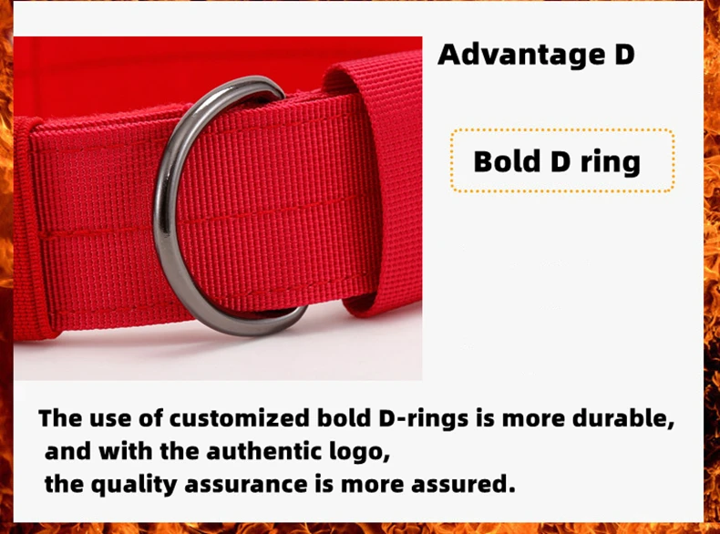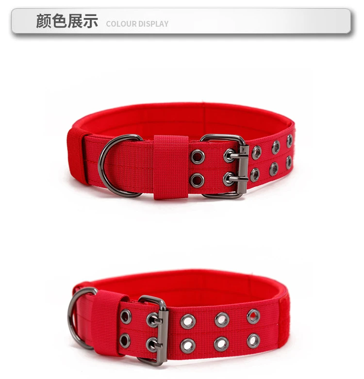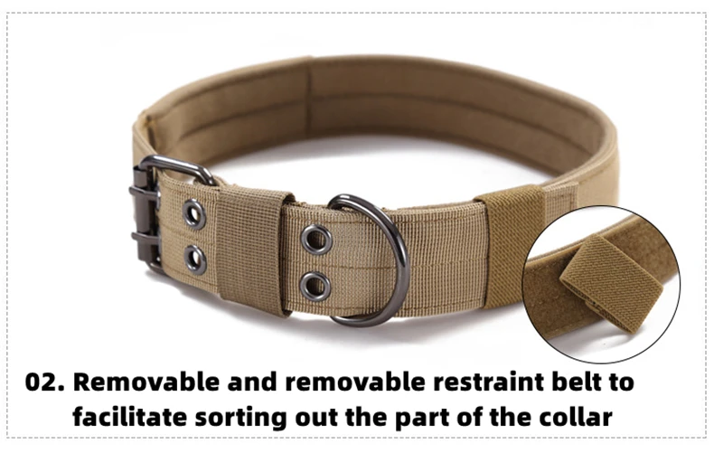 Diseño de hebilla de doble pin. Este collar de perro resistente tiene una hebilla de metal de doble pin con 5 puntos ajustables, conveniente para que pueda ajustar la longitud como desee. La banda elástica de este collar táctico k9 guardará el cinturón extra ajustado. Para que su perro no pueda rasgarlo.