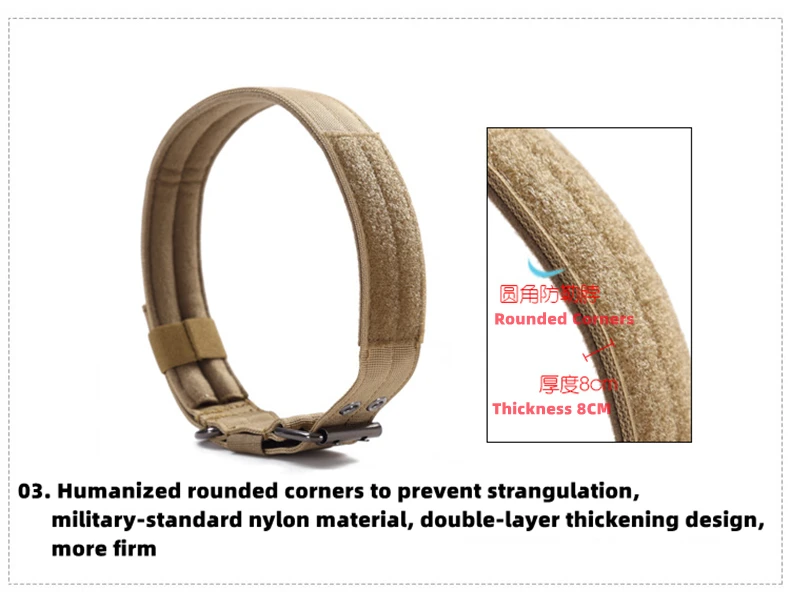 03. Esquinas redondeadas humanizadas para evitar el estrangulamiento, material de nailon estándar militar, diseño de engrosamiento de doble capa, más firme