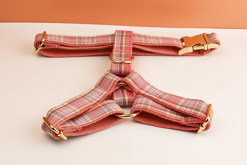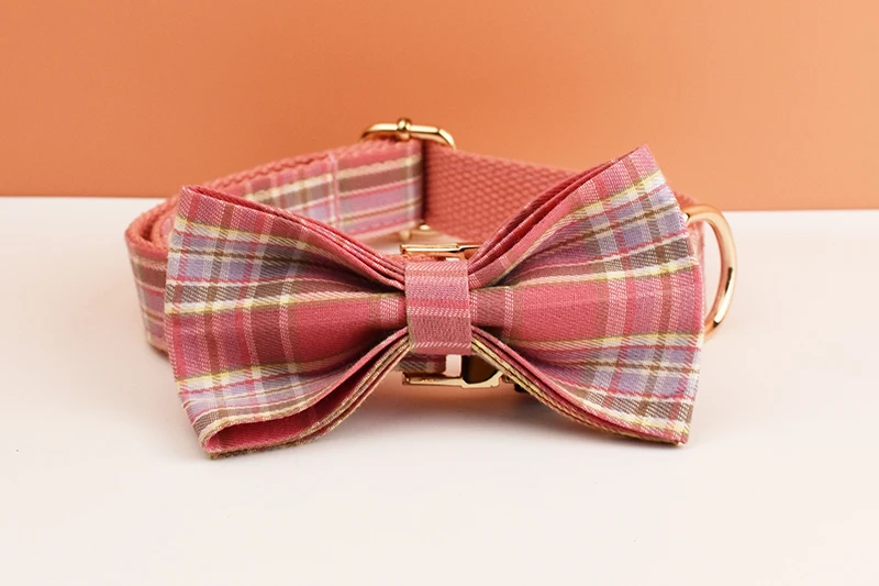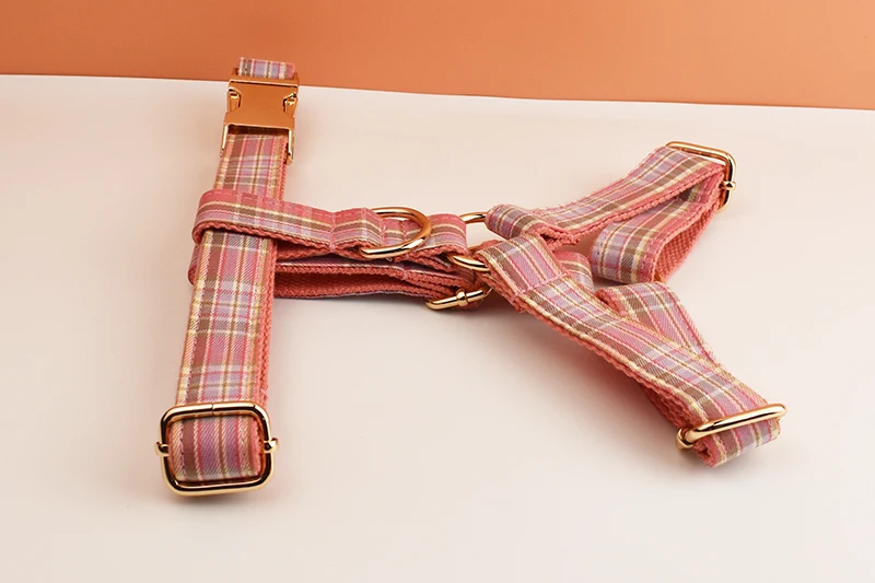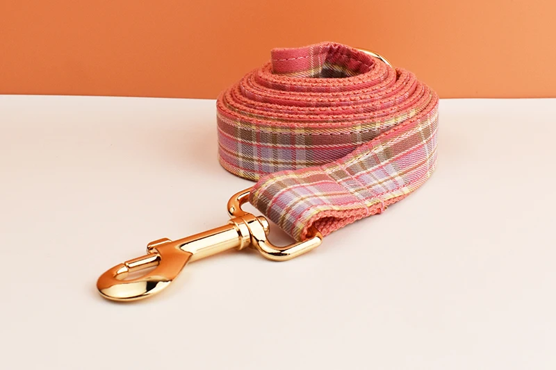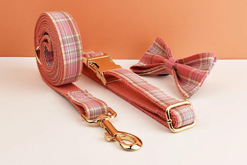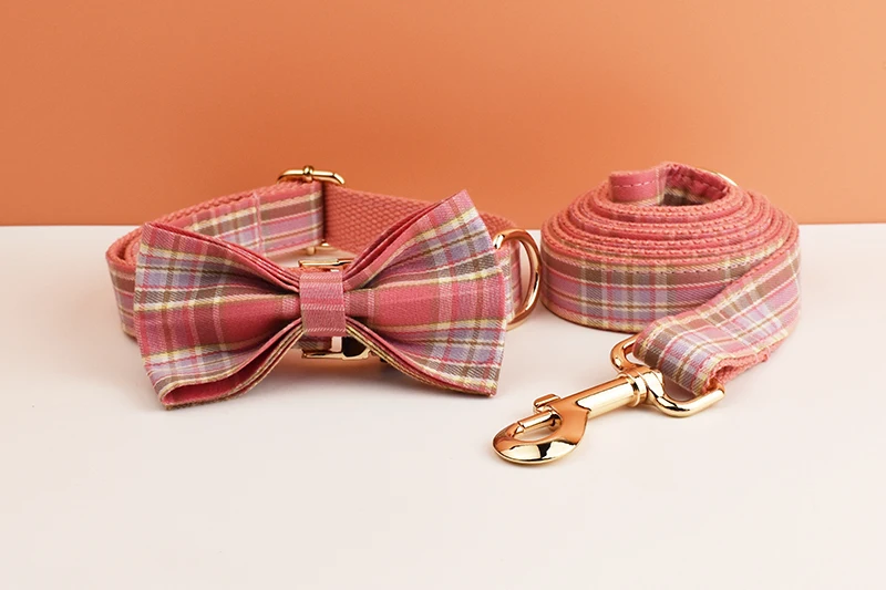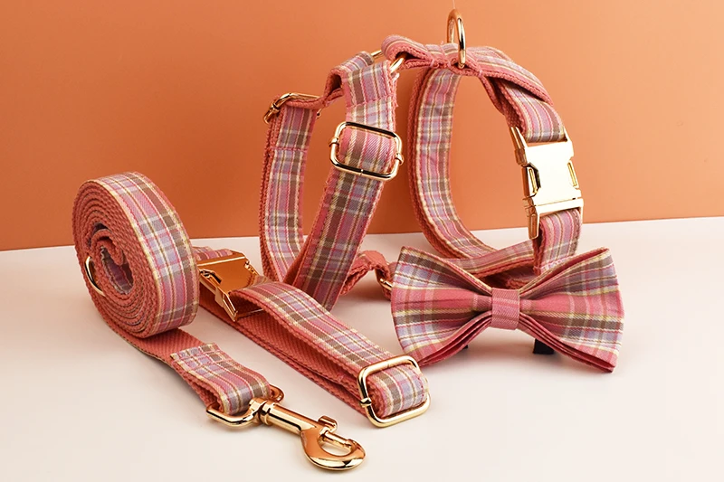 Juego de collar y correa para perro a cuadros para perros, placa de identificación grabada personalizada, suministros para mascotas, rejilla de correa para perro 15
