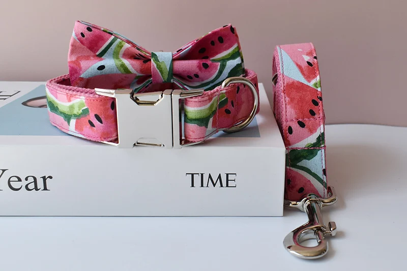Collar y correa para perro con lazo de frutas para mascotas personalizado, Se puede tallar gratis, adecuado para todo tipo de perros pequeños, fruta para perros medianos 04