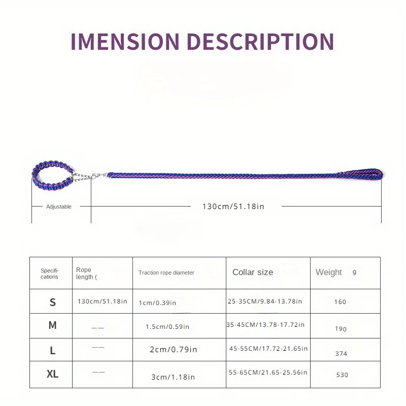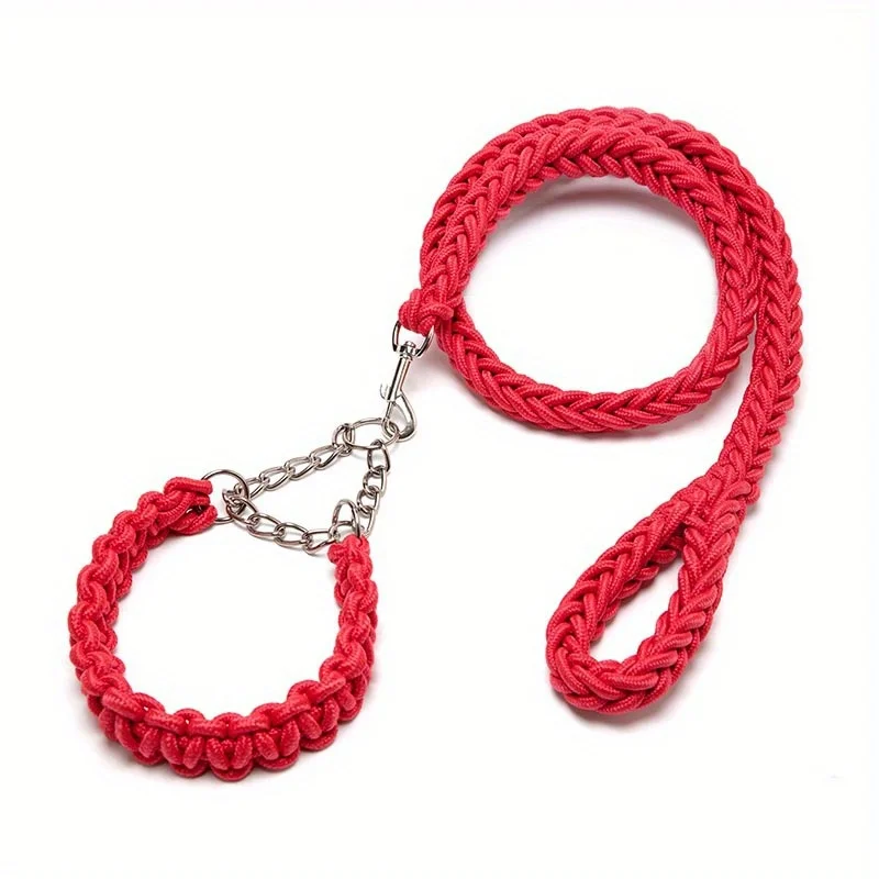 Juego de Collar y correa para perro de nailon tejido ajustable, cuerda de tracción trenzada de 8 hebras, cadena duradera para mascotas para caminar y entrenar, 1 ud.