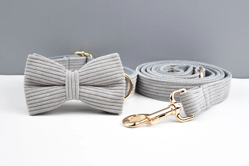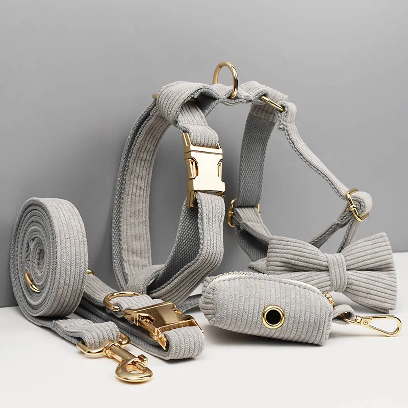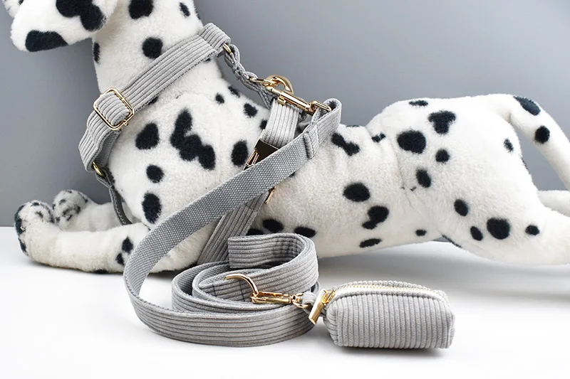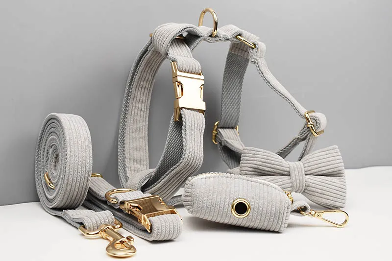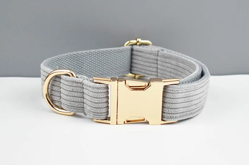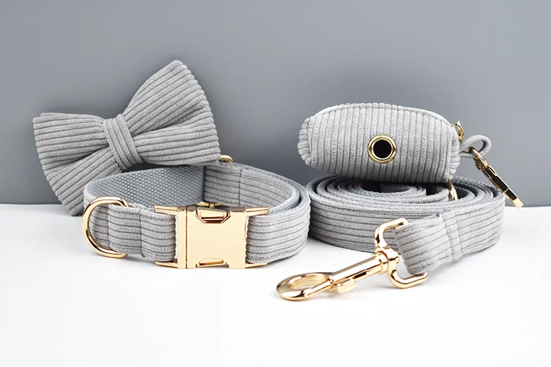 Juego de collar y correa de perro de pana gris claro para perros Placa de identificación grabada personalizada Suministros para mascotas Correa de perro Corduroy06