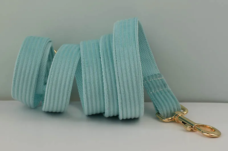 Verde lagoJuego de collar y correa de pana para perros, placa de identificación grabada personalizada, suministros para mascotas, correa para perros, pana19