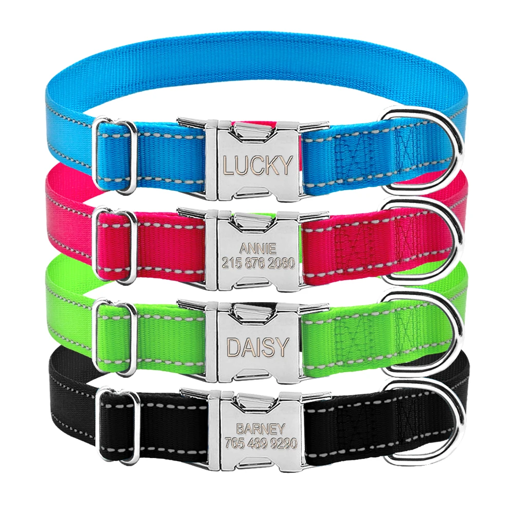 Juego de collar y correa personalizados para perros, collares reflectantes de nailon para mascotas, correa de plomo grabada, etiqueta de identificación para perros pequeños y grandes PitbullMaterial: nailon y hebilla de metal, alta calidad.