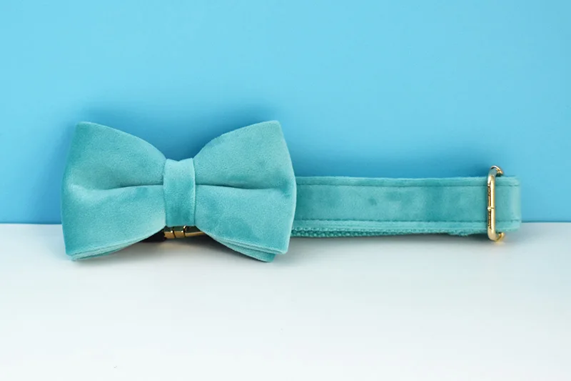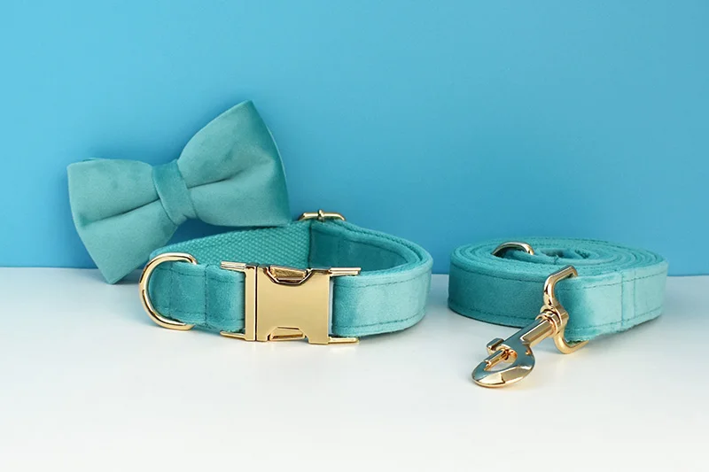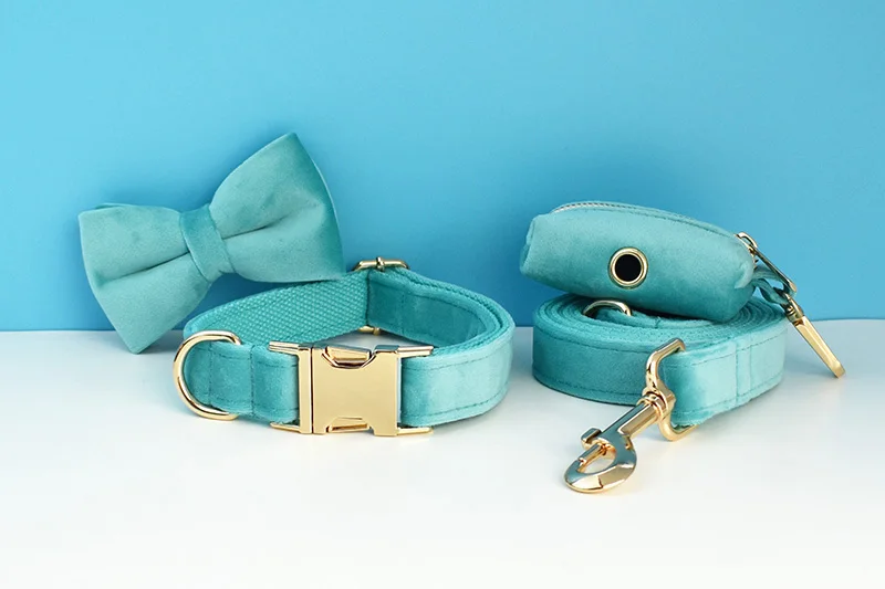 Juego de collar y correa de terciopelo con piedra turquesa para perros, placa con nombre grabada personalizada, suministros para mascotas, correa para perro, terciopelo 40