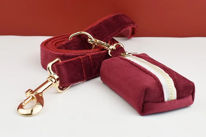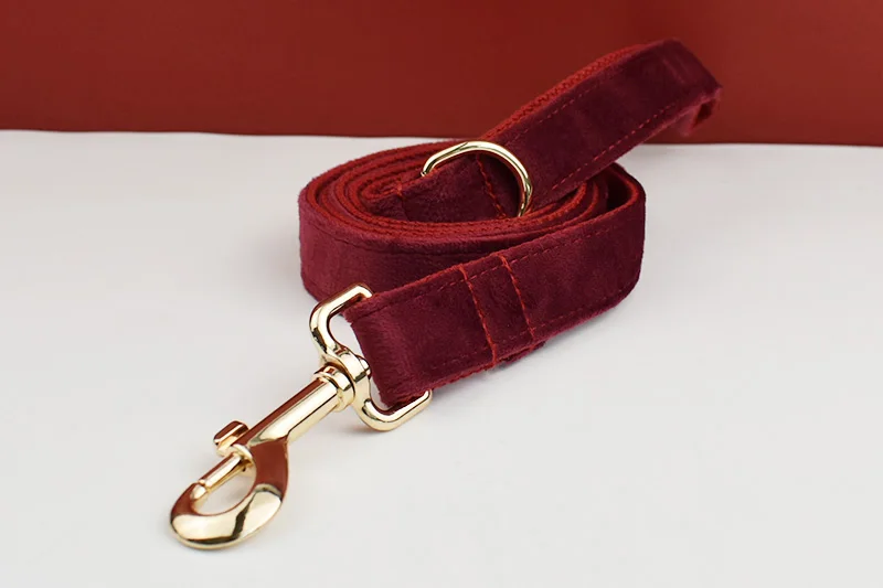 Juego de collar y correa de terciopelo de vino tinto para perros grandes, placa con nombre grabada personalizada, suministros para mascotas, correa para perro de terciopelo07