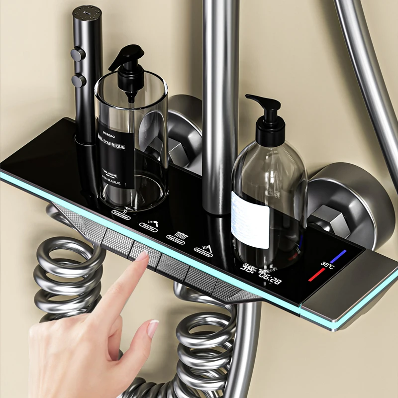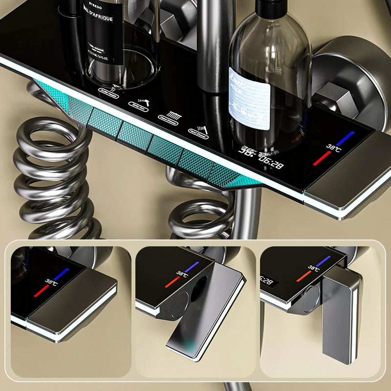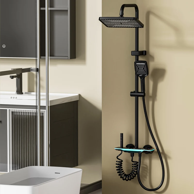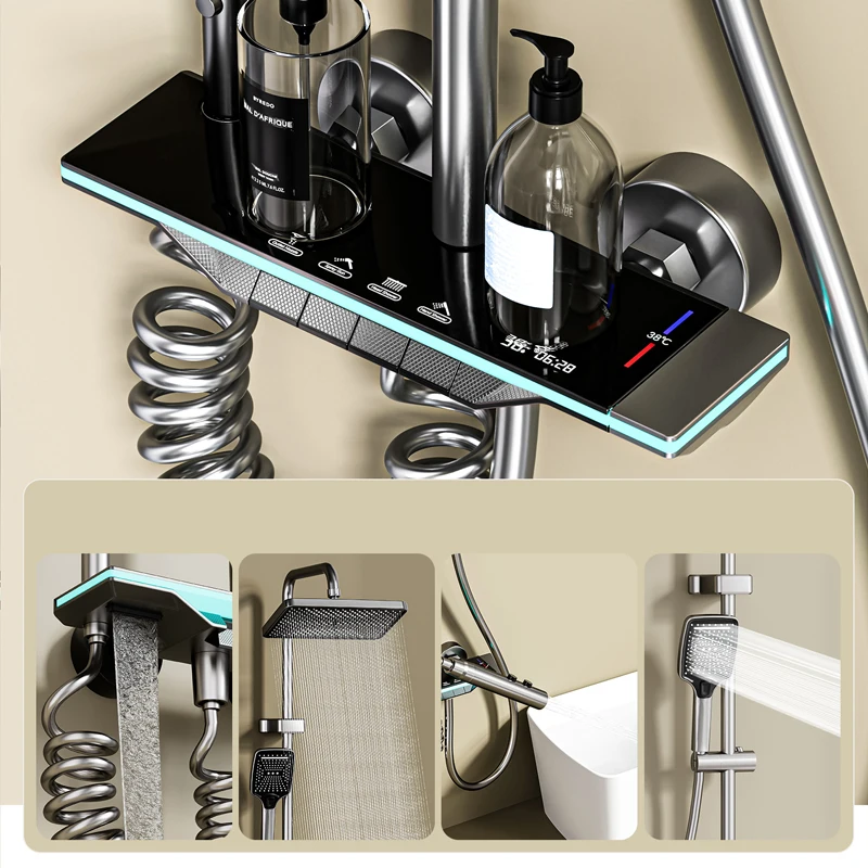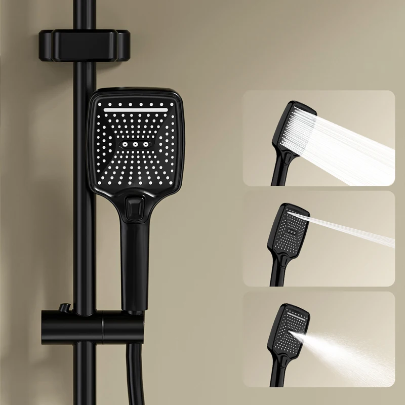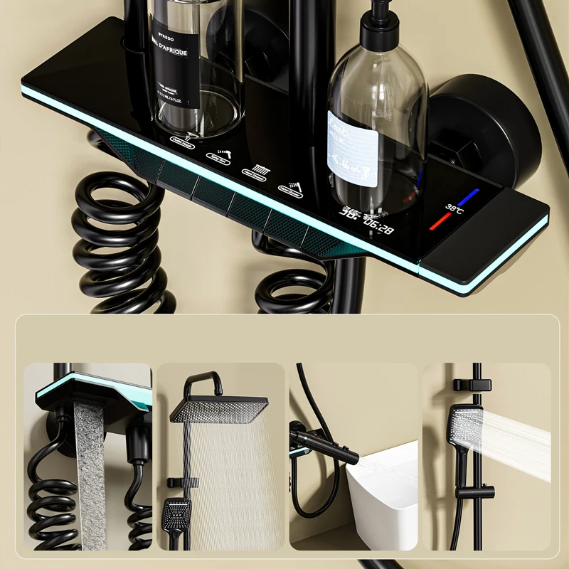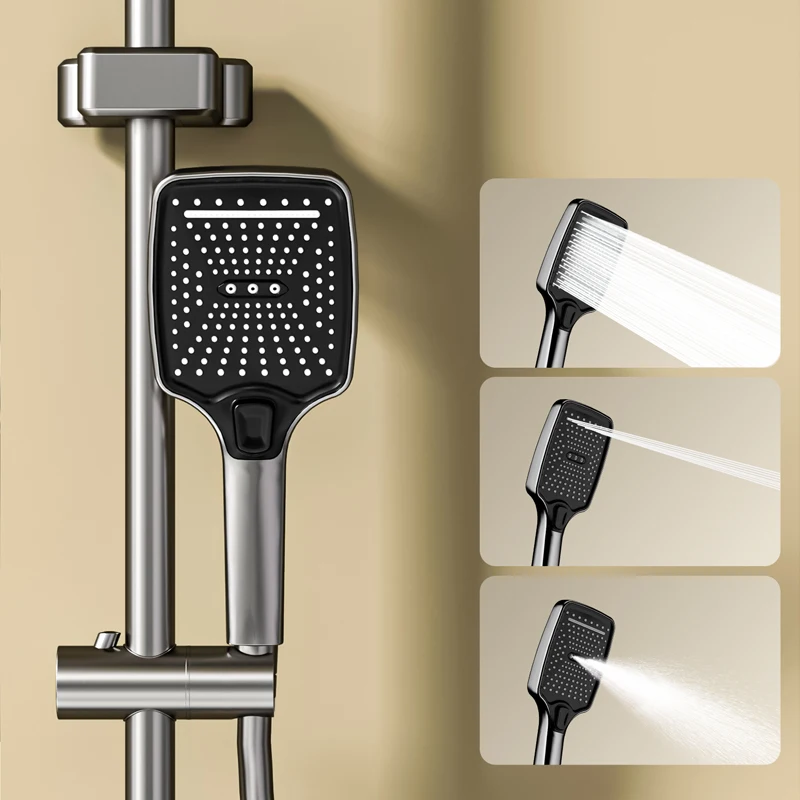 La ducha superior se puede ajustar universalmente, el soporte de la ducha de mano puede ajustar la altura y el ángulo de inclinación, que es adecuado para las necesidades de diferentes usuarios.