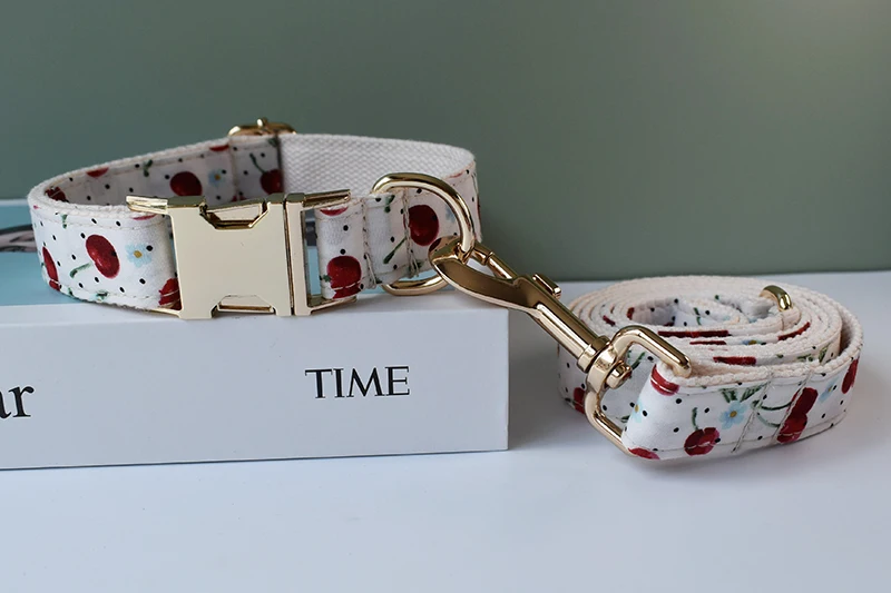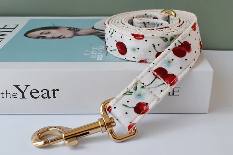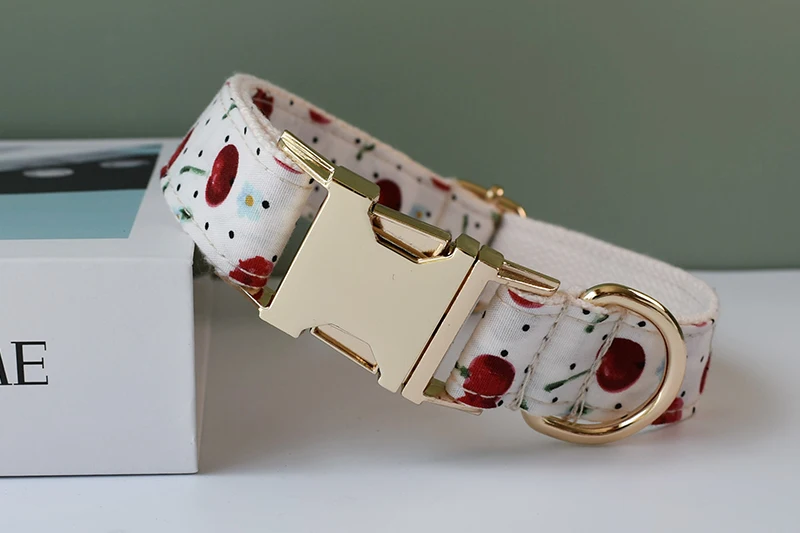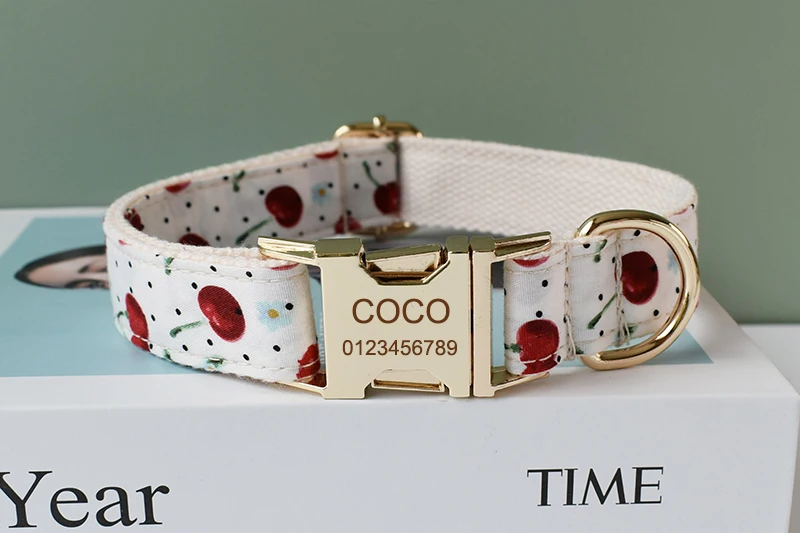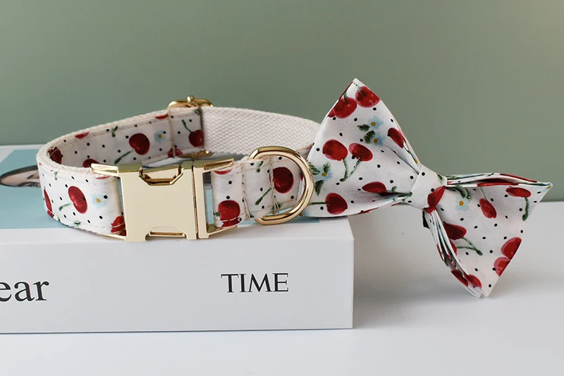 Collar de perro con grabado gratis, conjunto de correa para collar para mascota mediana y grande con pajarita, impresión de frutas, suministros para mascotas, regalo de Navidad, fruta 05