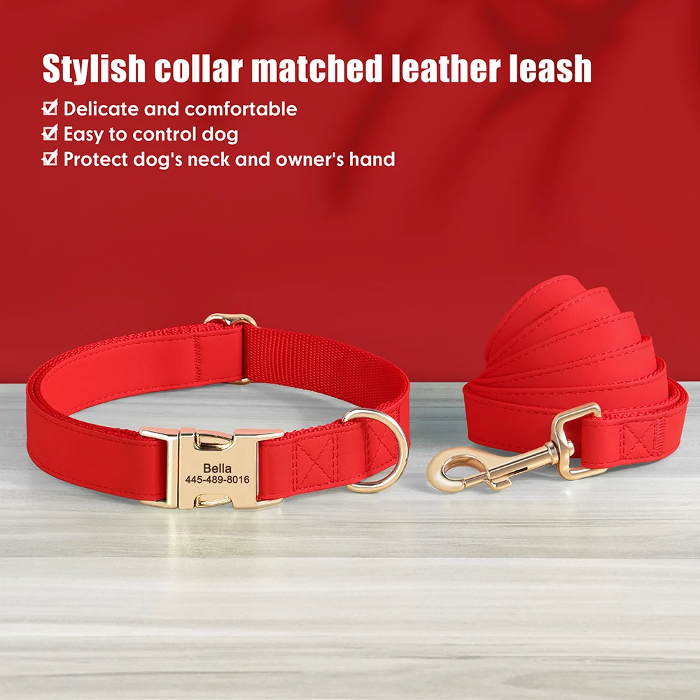 Juego de correa de Collar para perro personalizado, bolsa de cuero PU para perros, collares con hebilla para perro, correa para caminar para mascotas, bolsas de residuos para perros pequeños y medianos