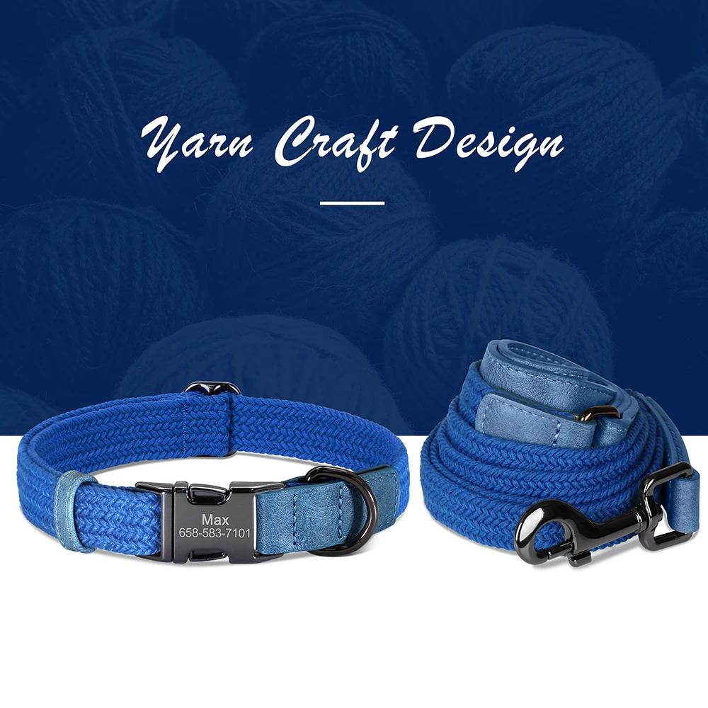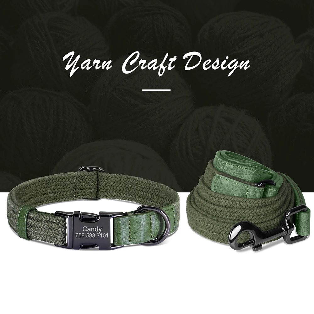 Juego de correa de Collar para perro personalizado, collares de nailon para perro con cuerda de plomo para caminar, collar ajustable para mascotas para perros pequeños y grandes, duraderoTipo: Juego de correa para collar de perro