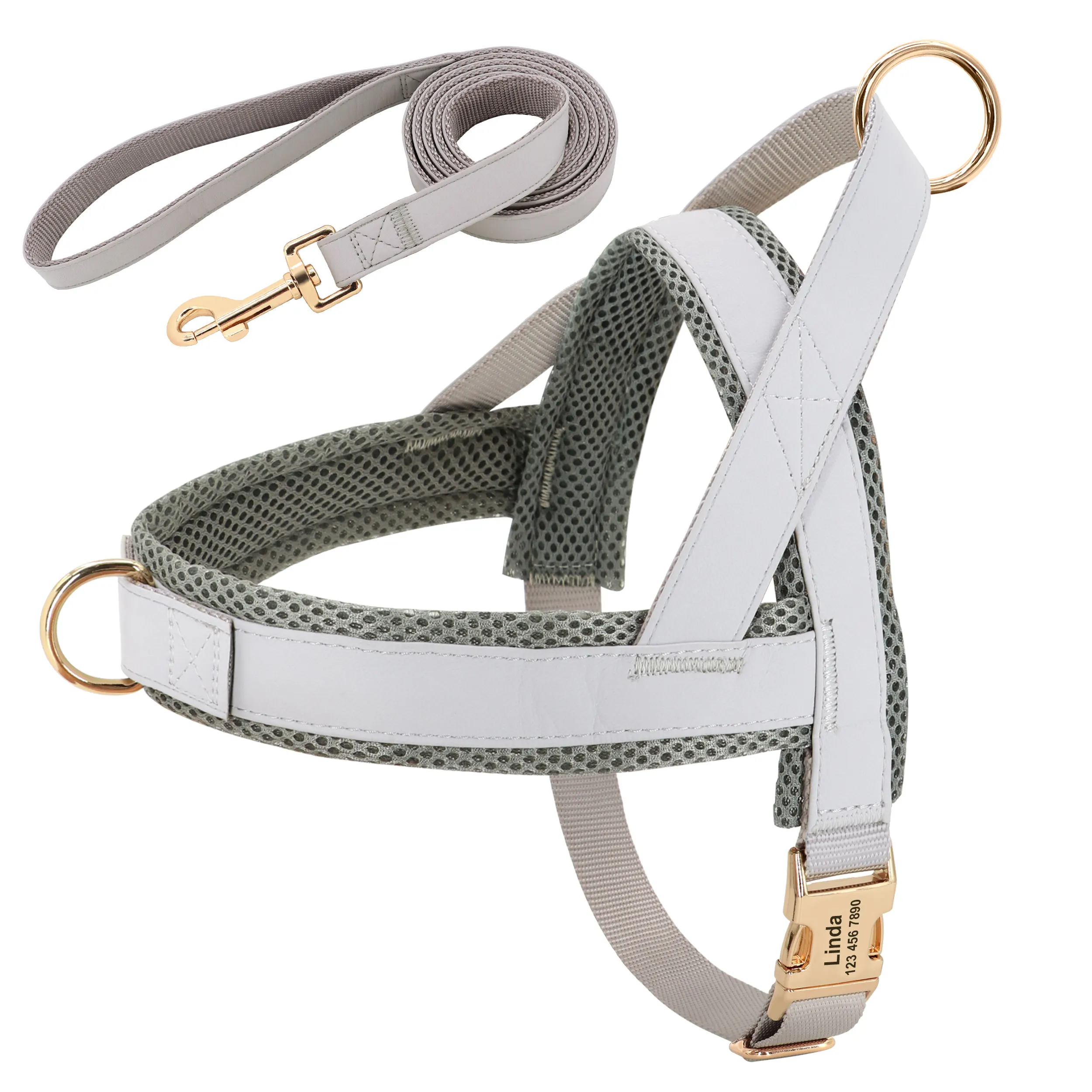 Juego de correas de arnés para perros personalizado, arneses para perros sin tirones, chalecos ajustables para mascotas para perros pequeños, medianos y grandes, cuerda de plomo para caminar