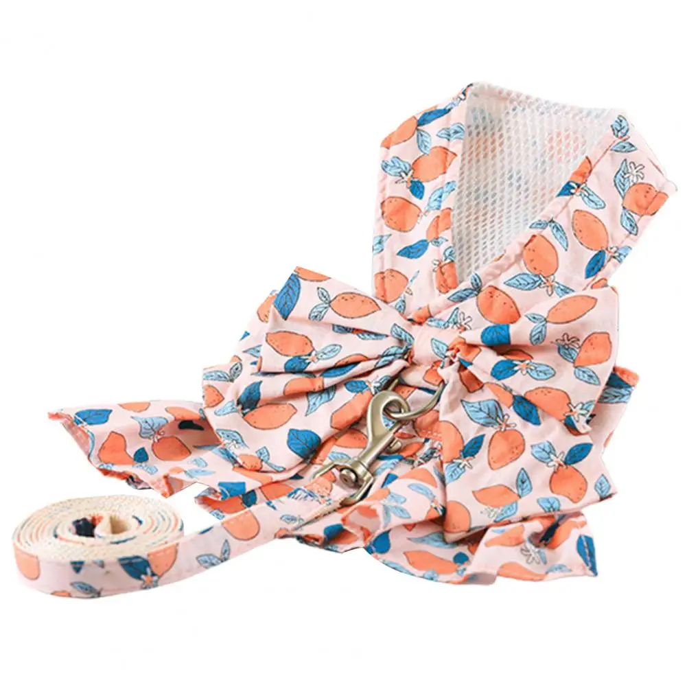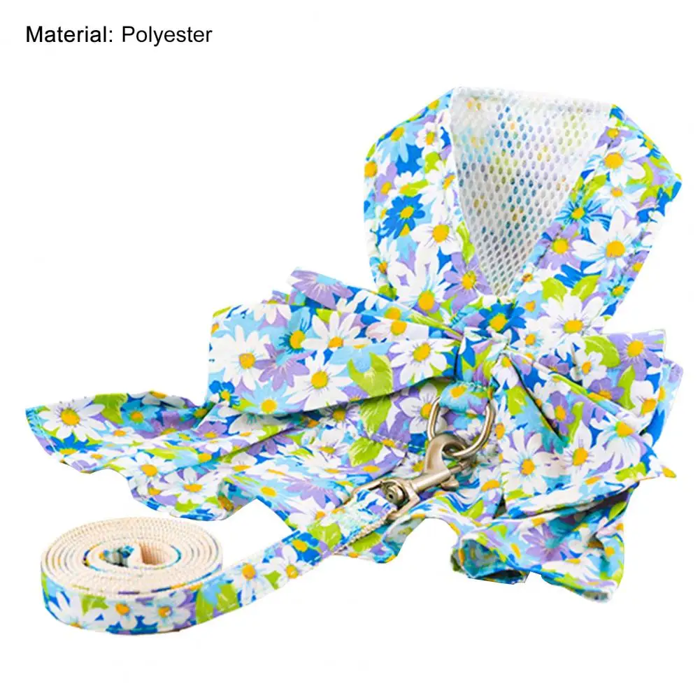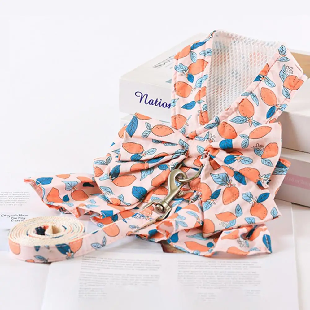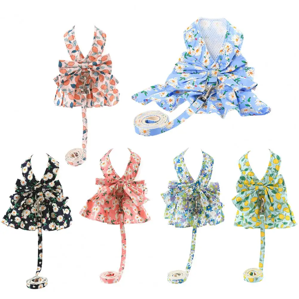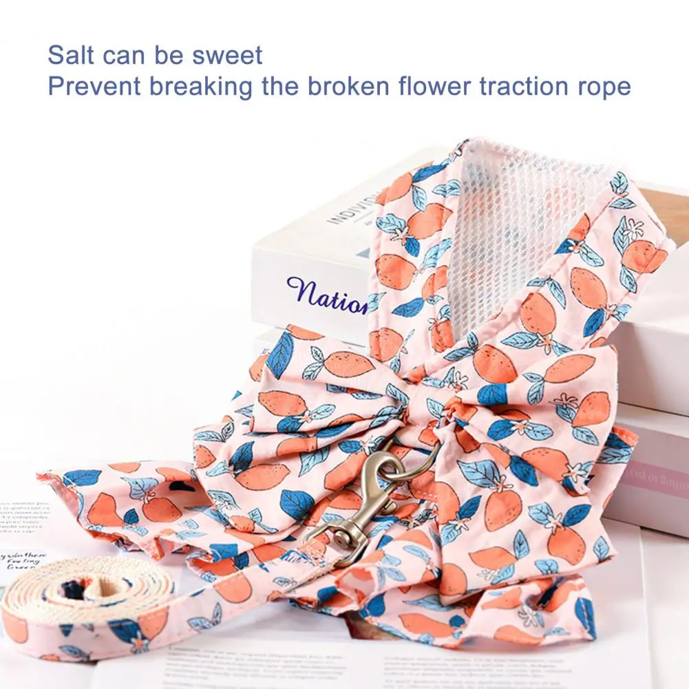 Conjunto de correa para el pecho para mascotas Patrón floral de frutas Vestir Transpirable Gatos Perros Chaleco Arnés Correa Kit para exteriores