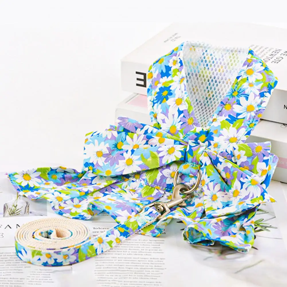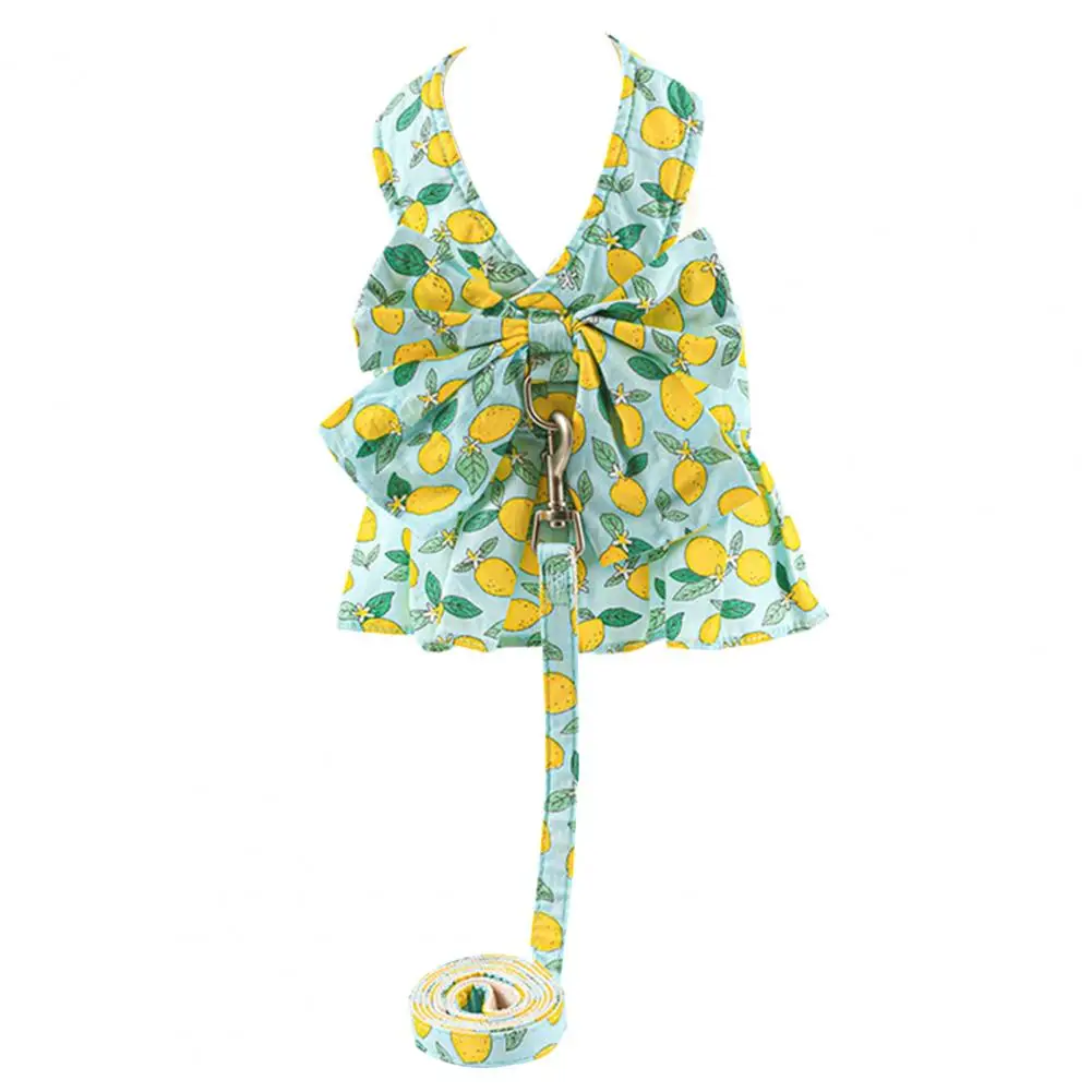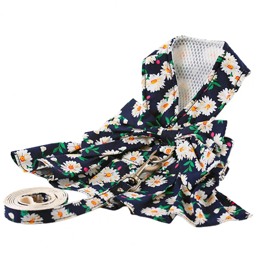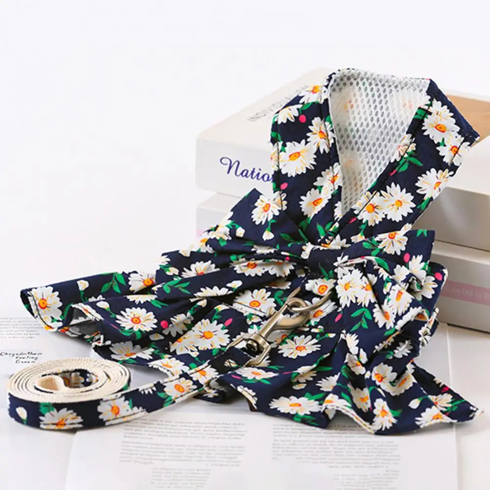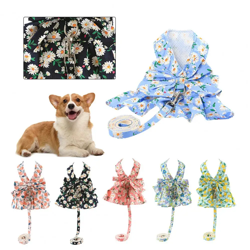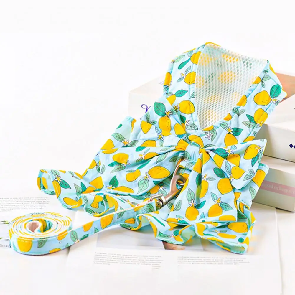 Conjunto de correa para el pecho para mascotas Patrón floral de frutas Vestir Transpirable Gatos Perros Chaleco Arnés Correa Kit para exteriores