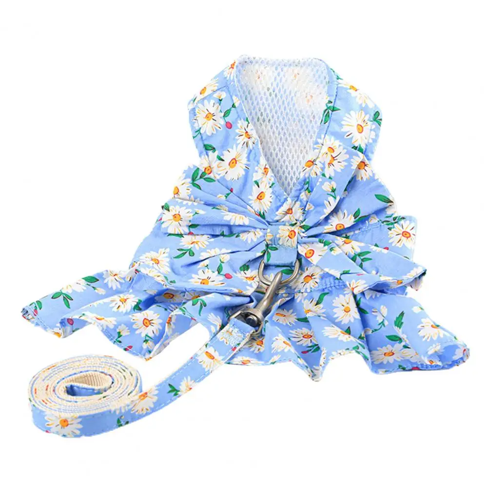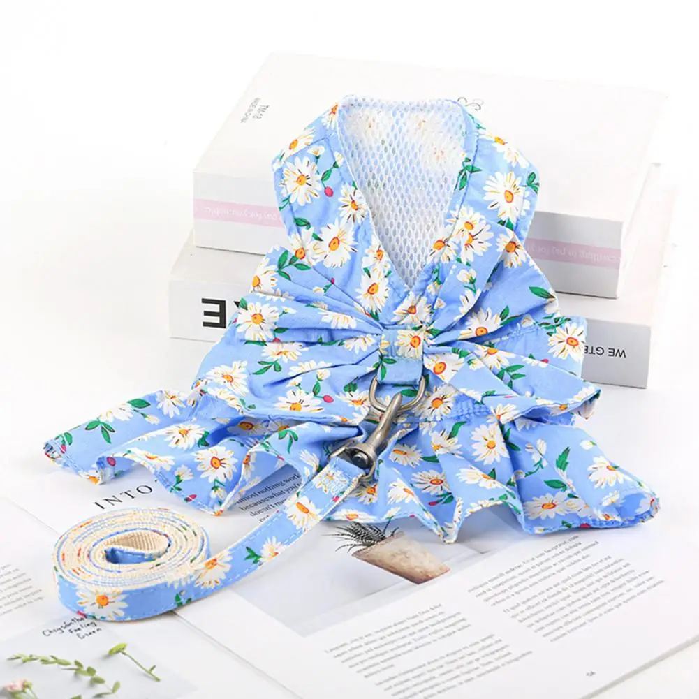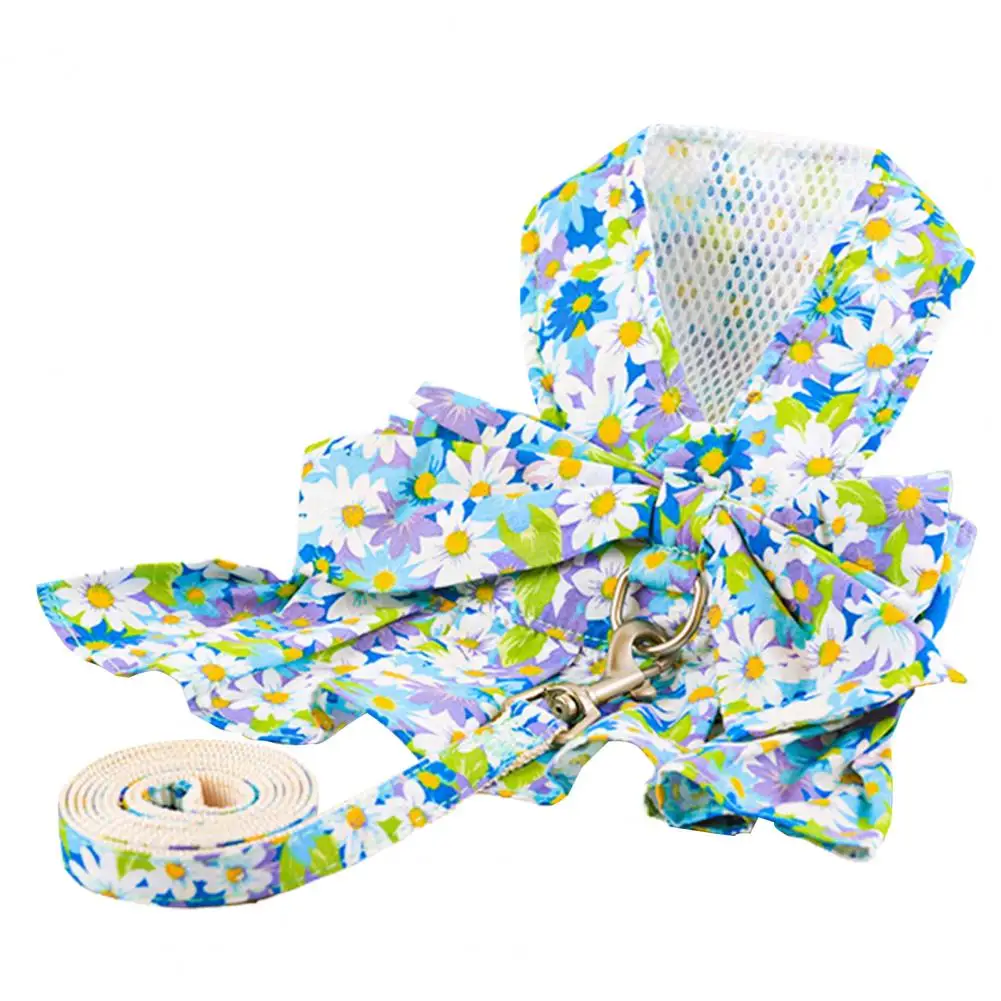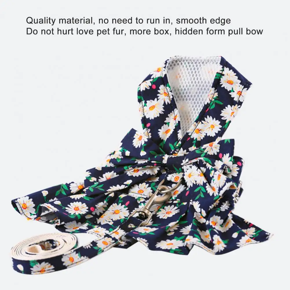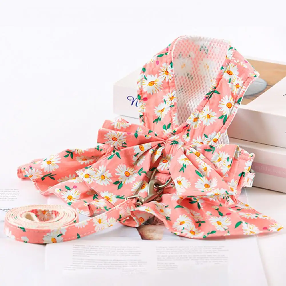 Conjunto de correa para el pecho para mascotas Patrón floral de frutas Vestir Transpirable Gatos Perros Chaleco Arnés Correa Kit para exteriores