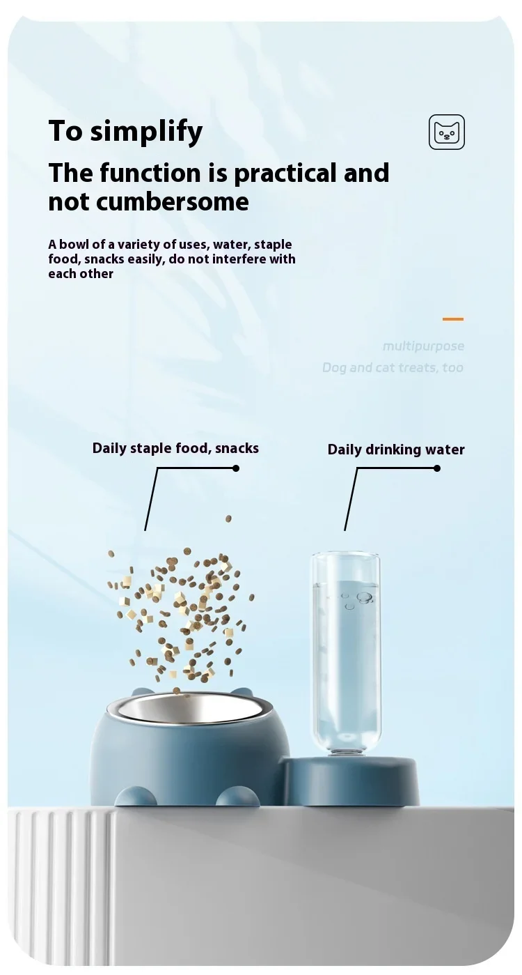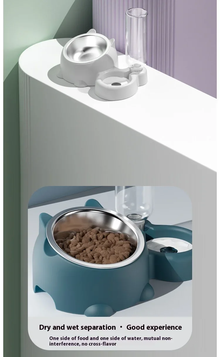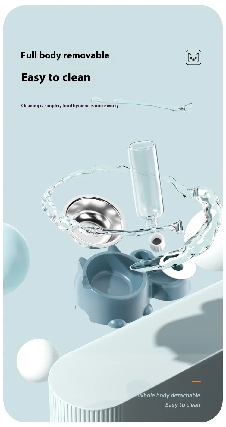 - Cuenco desmontable y botella de agua automática: los tazones de comida para gatos son desmontables y fáciles de sacar para lavarlos y mantenerlos limpios.El dispensador de agua automático rellenará el agua en el plato automáticamente y ayudará a mantener el agua llena, ya sea que esté en casa o no.
