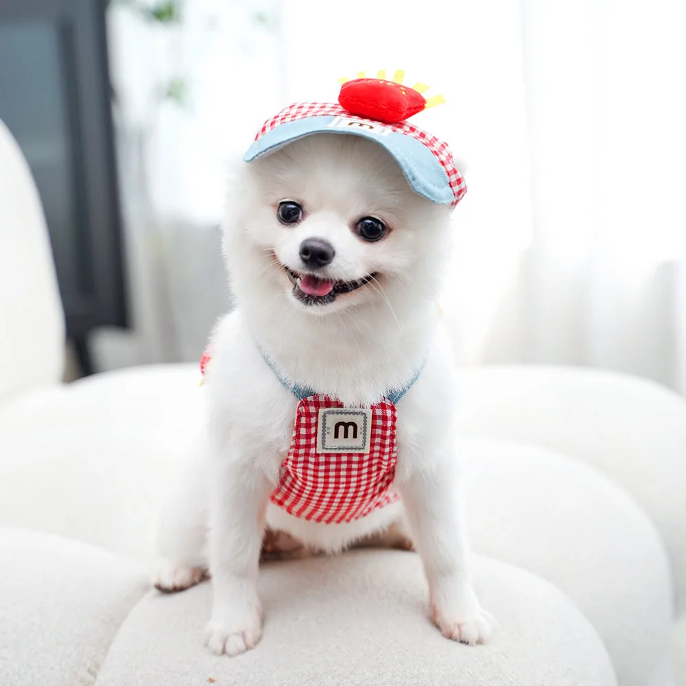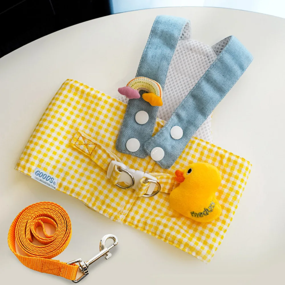 Juego de cuerda de tracción para el pecho y la espalda, patatas fritas para mascotas, ropa para perros y gatos para las cuatro estaciones, actividades al aire libre, suministros para sombrero para el sol, arnés para perros