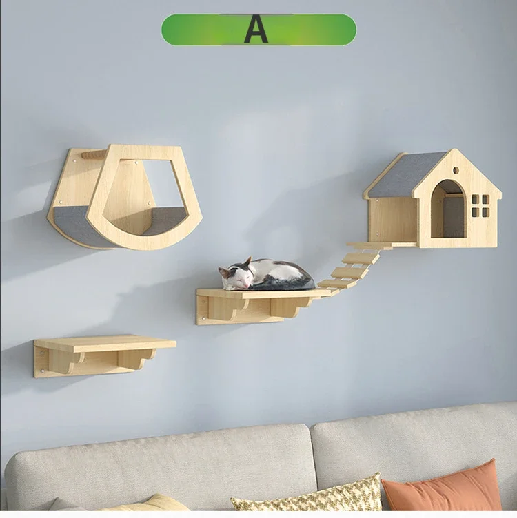 Juego de escalada de pared de madera para gatos, torre de árbol, suministros de entrenamiento, bricolaje, Villa para gatos, materiales inofensivos, productos de accesorios para mascotas