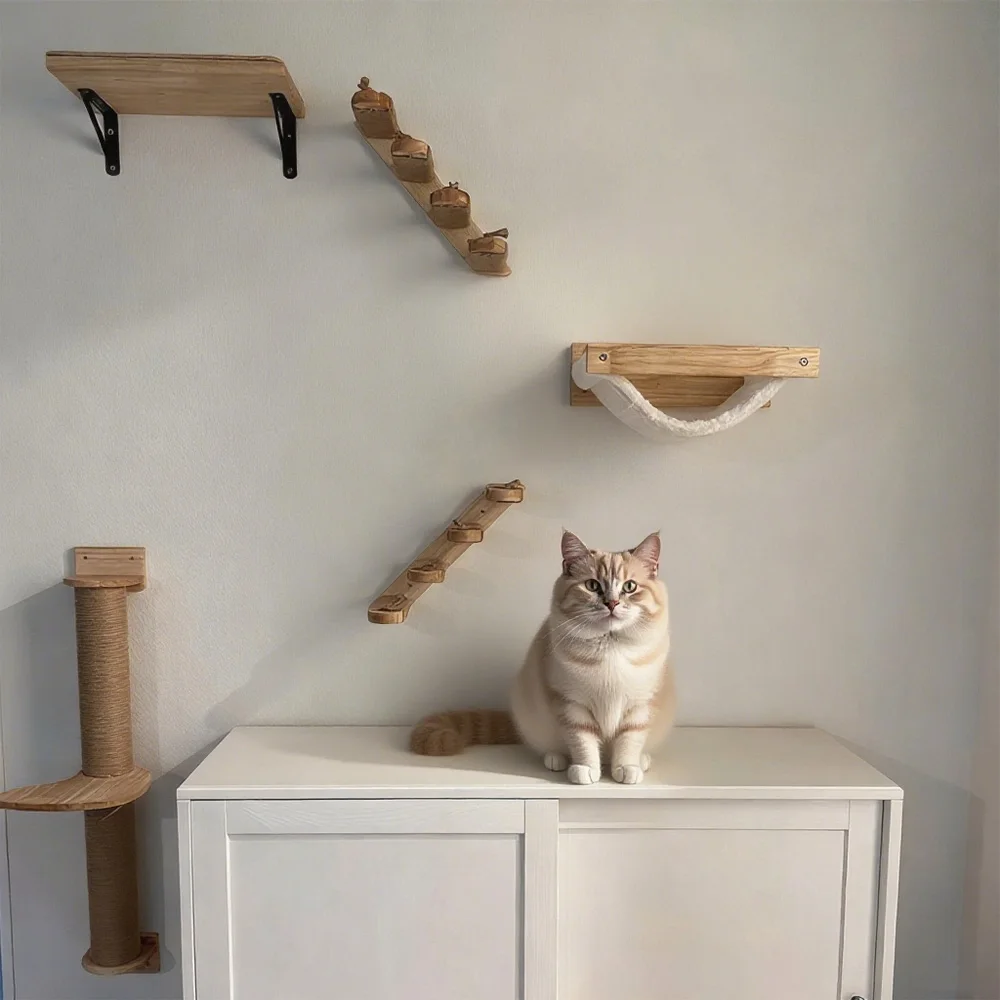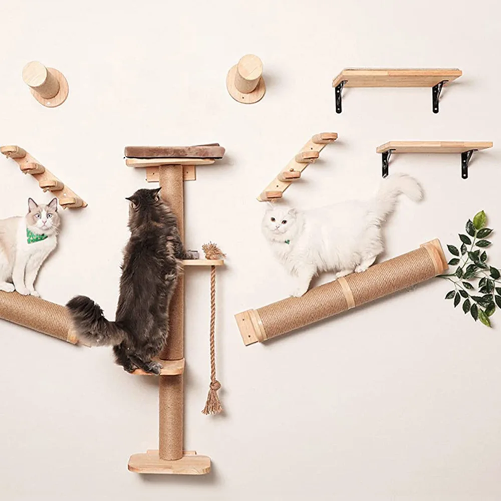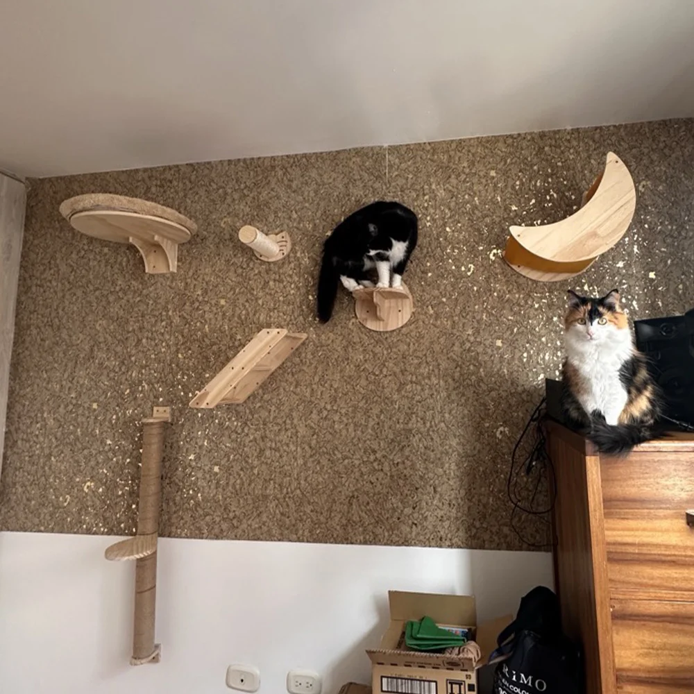 Los estantes de pared para gatos se adaptan al hábito de los gatos de escalar, aumentan el ejercicio y reduciendo la posibilidad de obesidad, lo que es bueno para la salud.Además, le da a los gatos espacio para escalar y evitar estropear la casa.