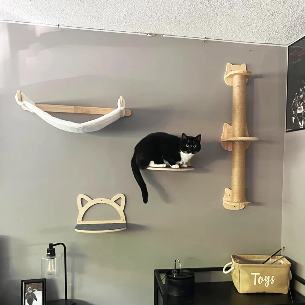 Colocación versátil: coloque los estantes en diferentes alturas para satisfacer las preferencias de escalada de su gato y crear un atractivo territorio vertical.