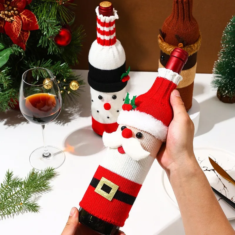 Juego de fundas de botella de vino de Navidad, bolsas de botella de vino tejidas de muñeco de nieve de Papá Noel, decoraciones de fiesta de Navidad para el hogar, regalos de Año Nuevo