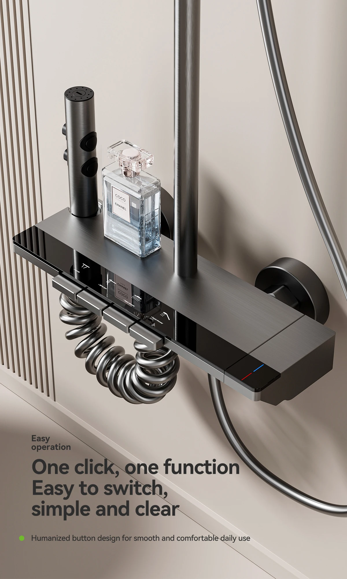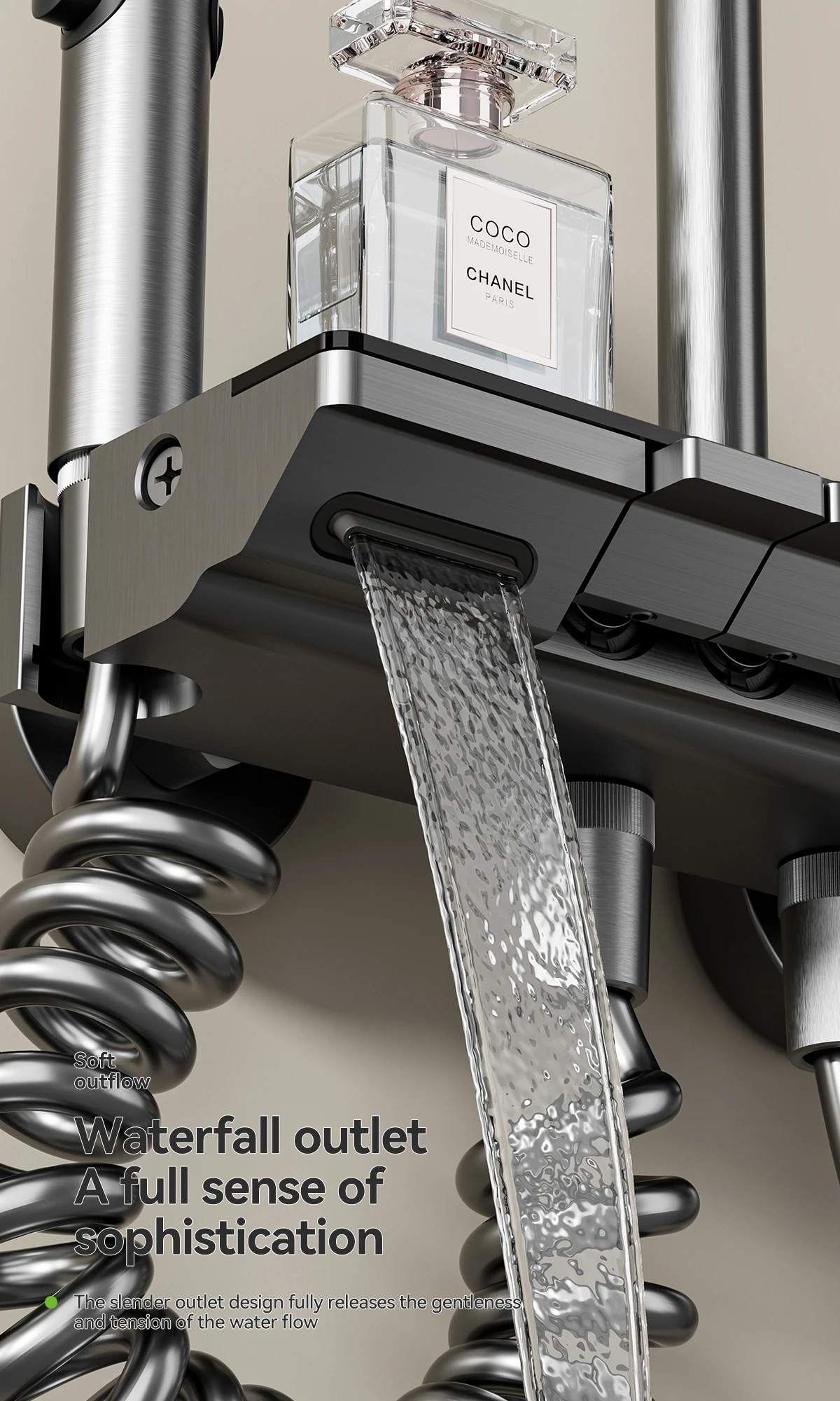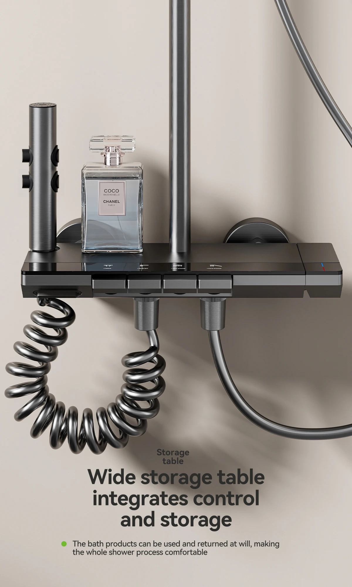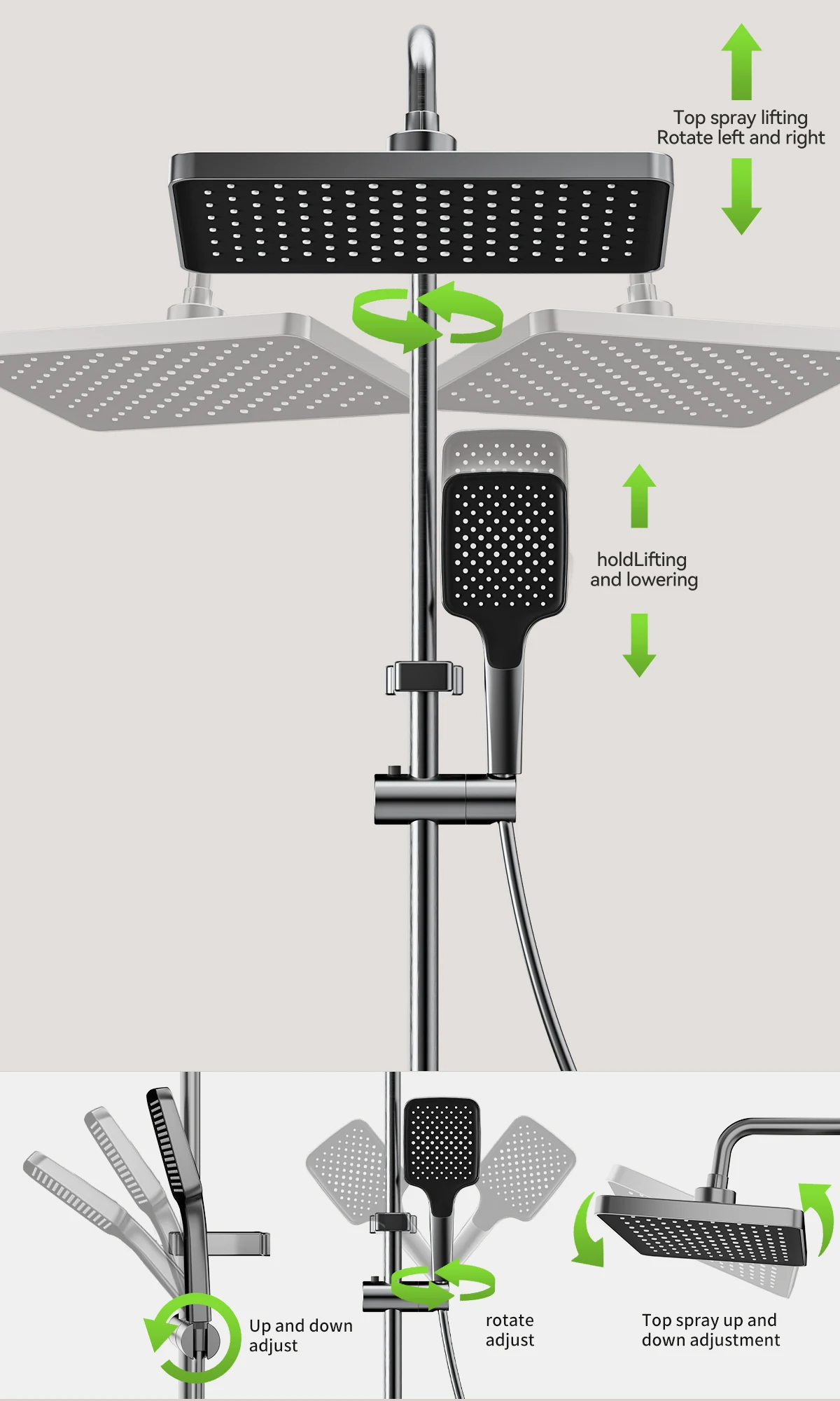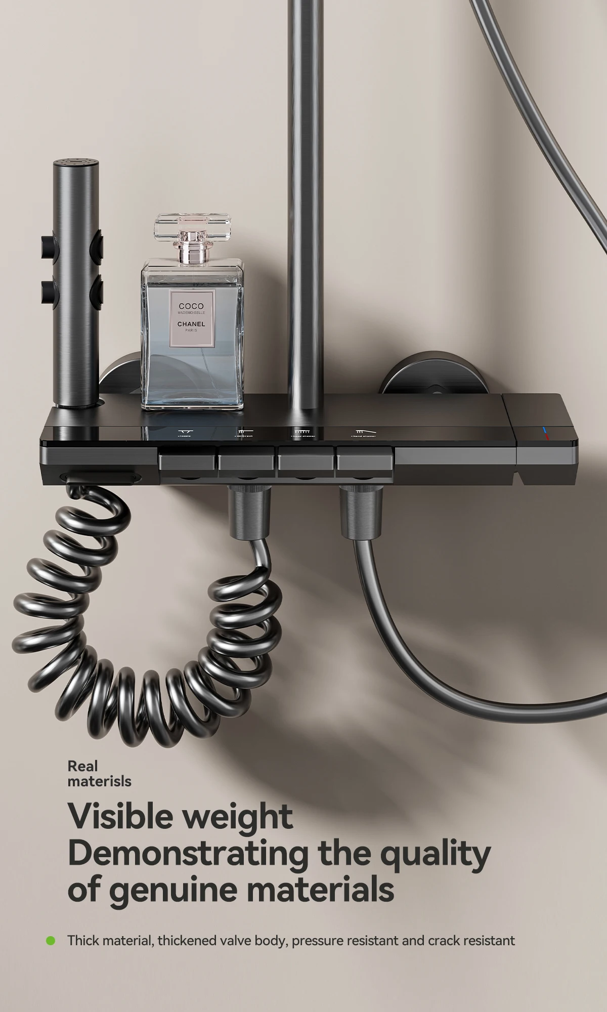 Juego de grifería de baño con botones multifunción y grifo, juego de cabezal de ducha, juego de grifería termostática, ducha manual ajustable en altura para baño