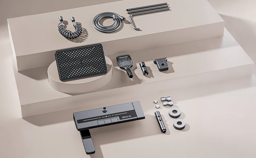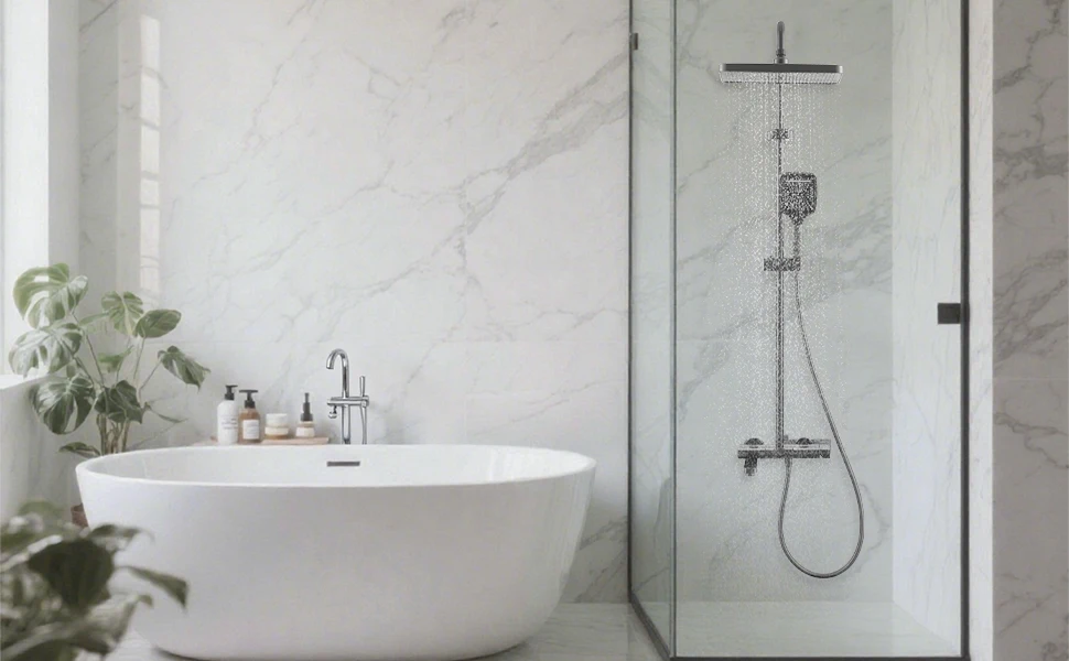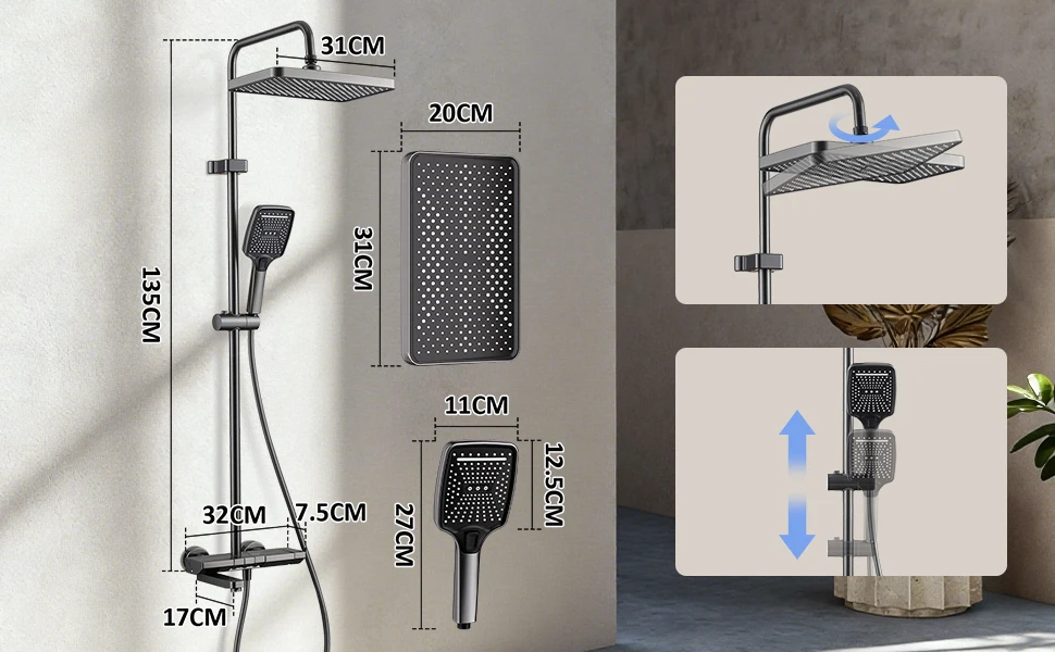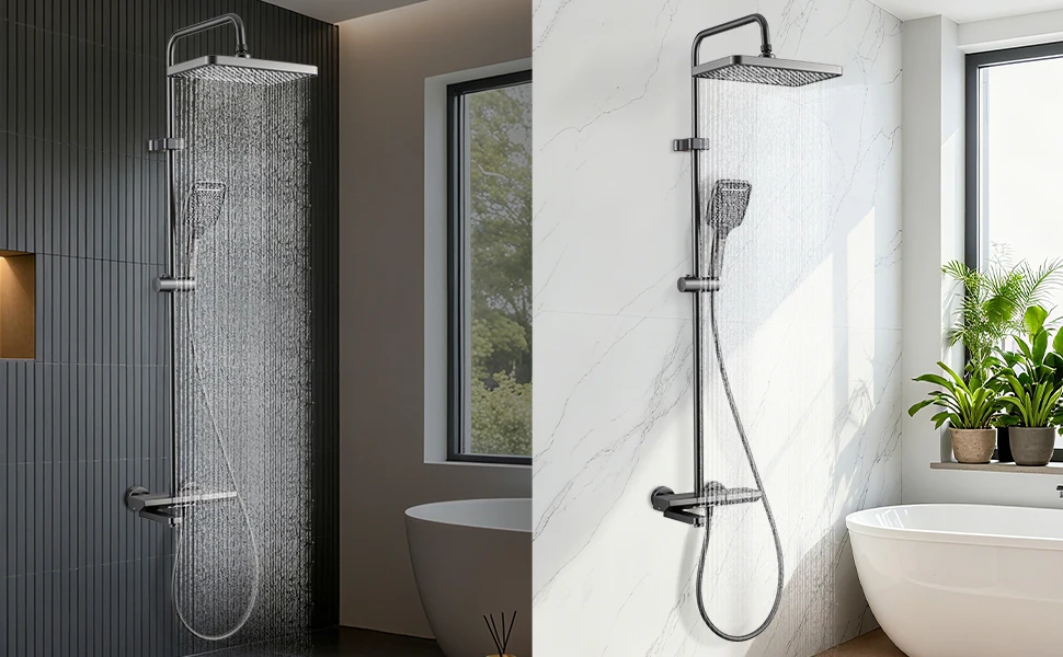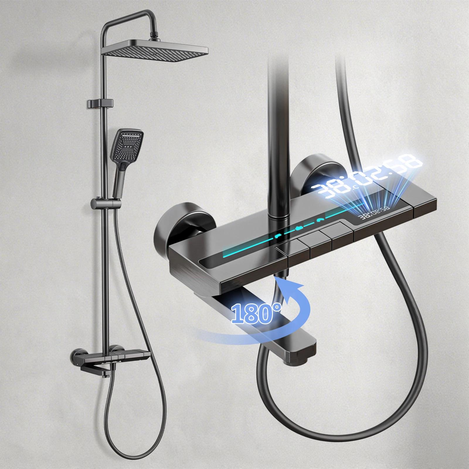 Juego de grifería de baño Caño plegable 180 ° caño giratorio Estilo minimalista premium Incluye columna de ducha y cabezal de ducha
