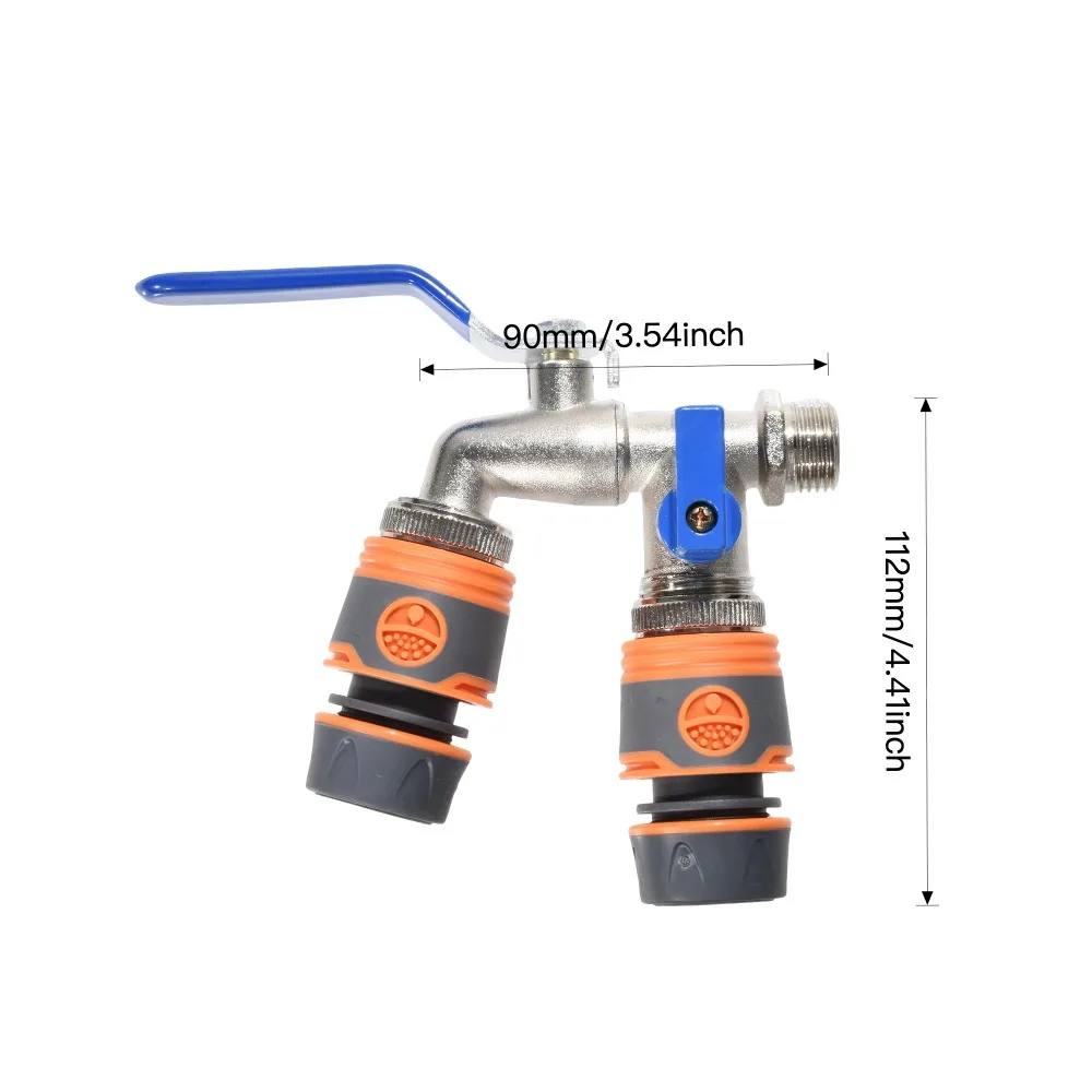 Esto Juego de grifos de jardín de doble salida de 3 piezasestá hecho de acero inoxidable 304con un mango rojopara mayor durabilidad y resistencia al óxido.Con un conector roscado universal, es perfecto para fijar a aspersores, boquillas de manguera, pistolas de agua y otras herramientas de riego de jardines.Ideal para uso en exteriores, este grifo garantiza control de agua confiable y a prueba de fugas.