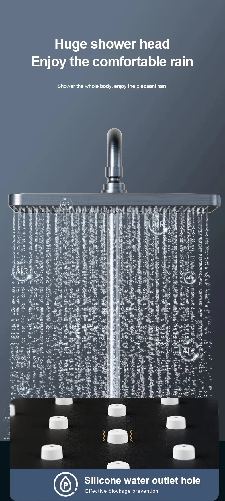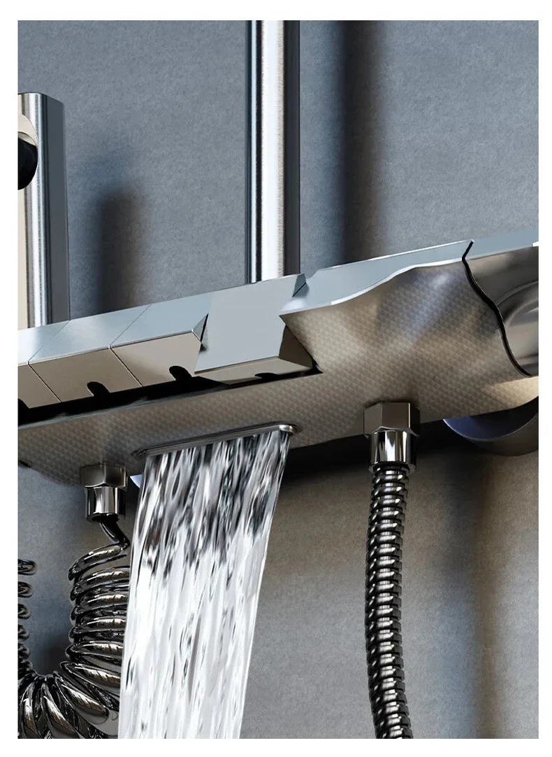 Juego de grifos de ducha para baño, 4 funciones, termostato de ducha con pantalla Digital, grifos de cobre de descarga de alta presión gris y negro