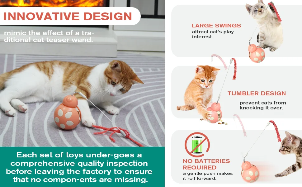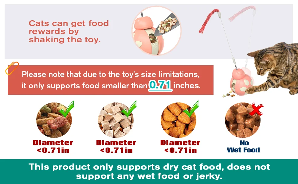 Juego interactivo y divertido para el gato. Están muy entretenidos con él y poco a poco descubren que pueden simplemente golpear el juguete y los caramelos caerán. Fácil de llenar, realmente tiene mucha capacidad. Los gatos están contentos con este material de buena calidad.