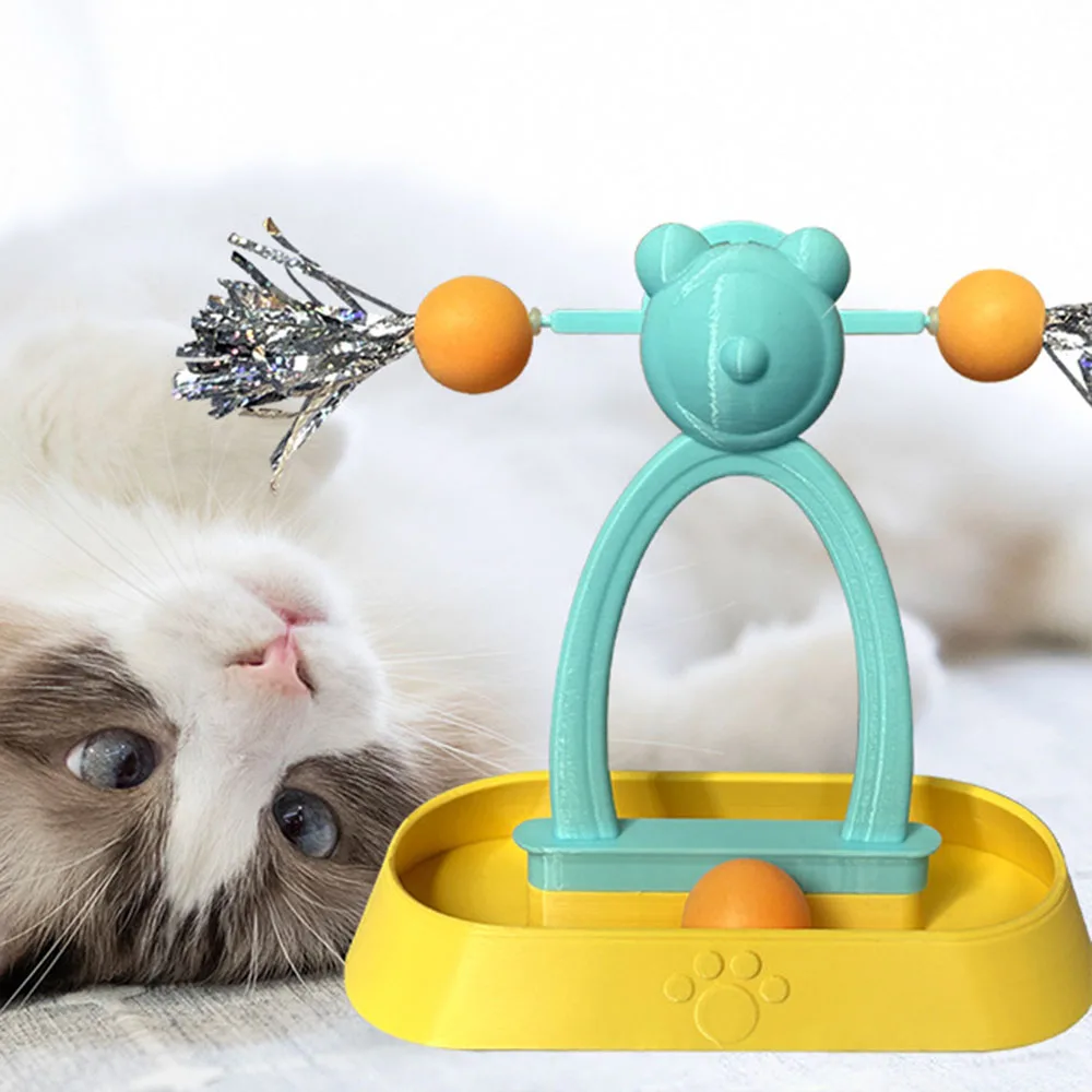 Juego interactivo de juguetes giratorios para gatos, bolas de pista de molino de viento + palo de teaser, resistente a los arañazos y duradero, perfecto para gatitos en interiores
